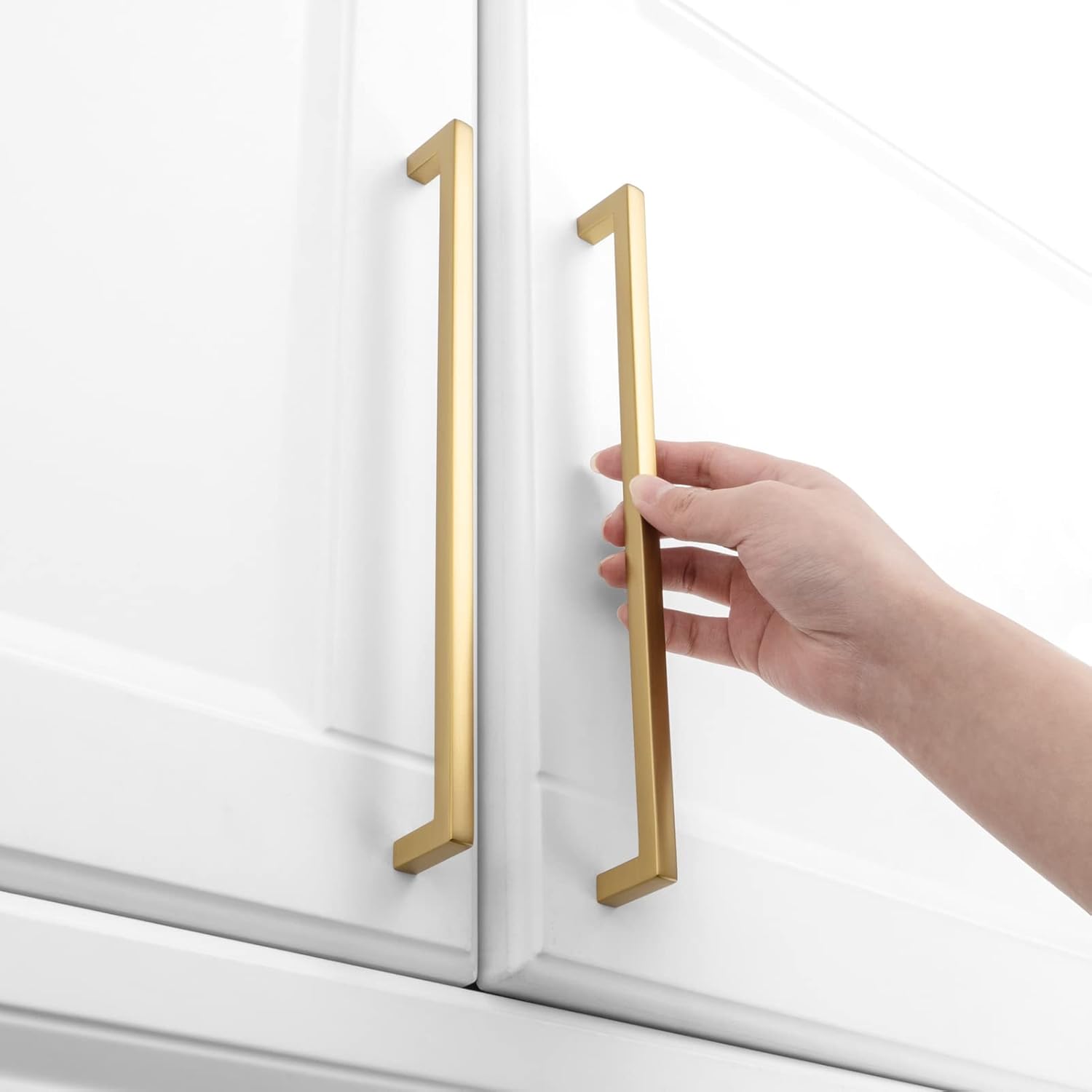 - Pack of 1 brushed gold square bar cabinet pull handles, solid metal hardware.