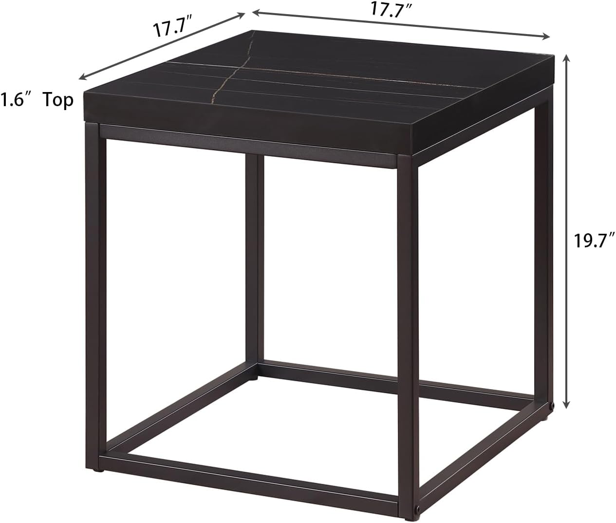 CENSI 18-Inch Black Marble Accent End Table/Side Table for Living Room, Modern Industrial, Square, Metal and Wood (Black Marble)