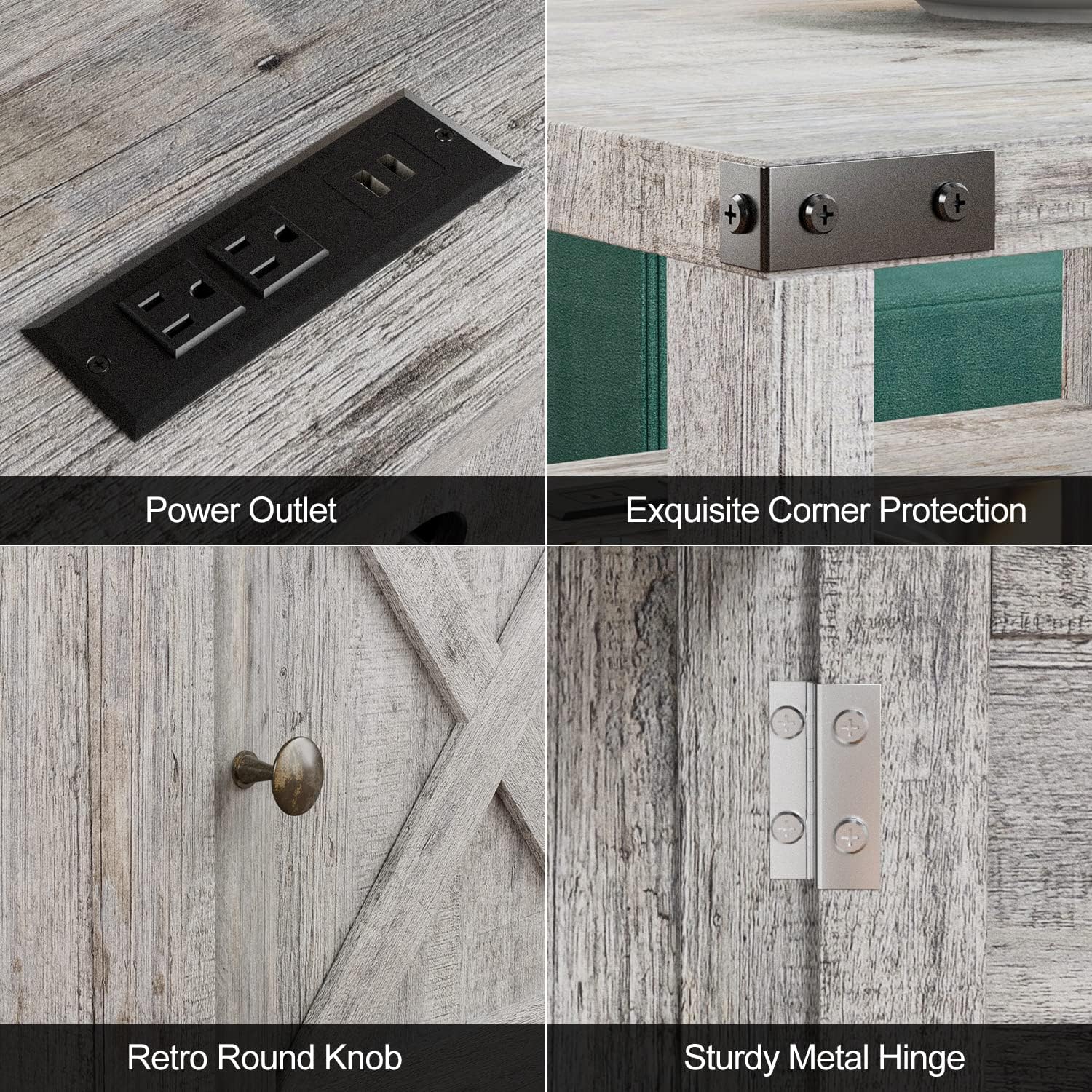Farmhouse Nightstand with Charging Station, Grayish White End Table Bedroom with Storage Living Room Side Table Beige Night Stand Industrial Bedside Bed Table with USB Ports and Outlets