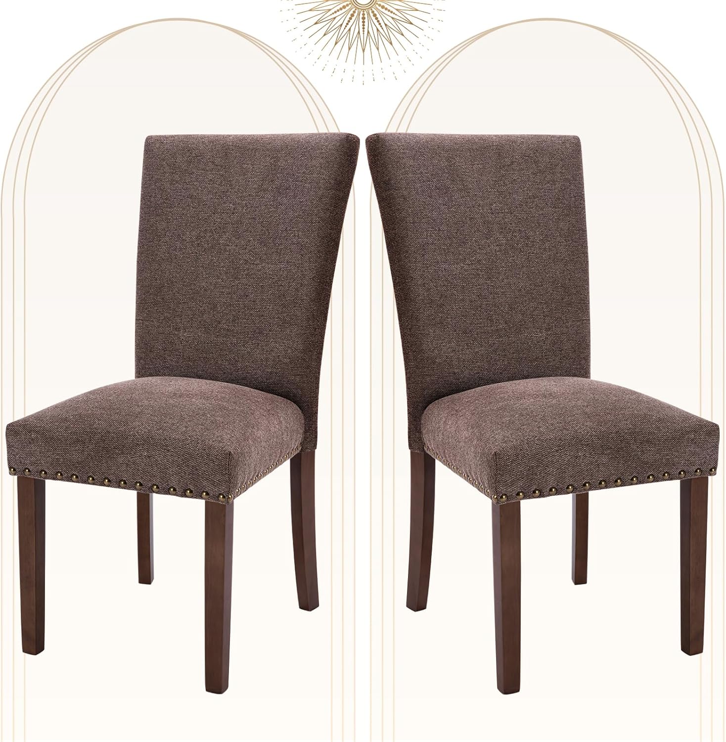 COLAMY Upholstered Parsons Dining Chairs Set of 2, Fabric Dining Room Kitchen Side Chair with Nailhead Trim and Wood Legs - Brown