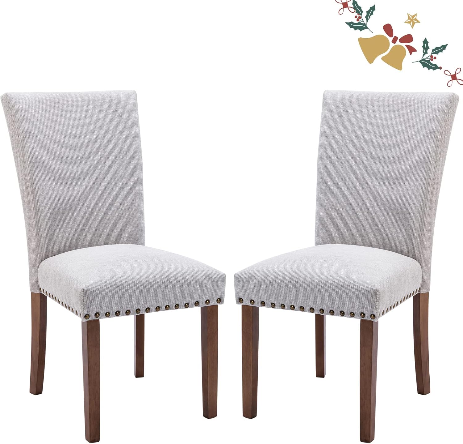 Parsons Dining Chairs Set of 2, Upholstered Nailhead Dining Room Kitchen Side Chair with Thick Cushions and Wood Legs, Light Grey