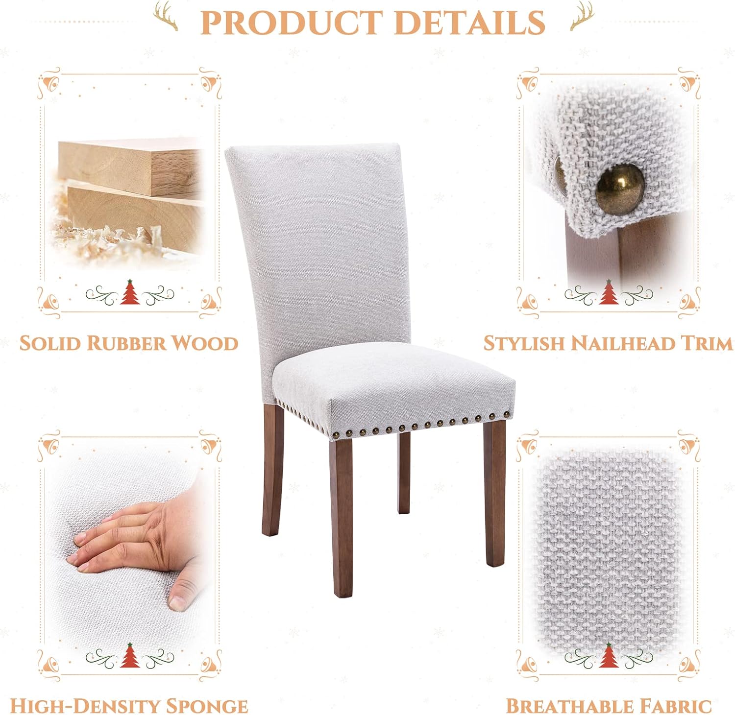- Used for Years to Come: Sturdy dining chairs supported by solid rubber wood legs that can hold up to 250 lb each, adjustable feet for extra stability, and a chic look that makes it a nice add-on to your dining room or bedroom.