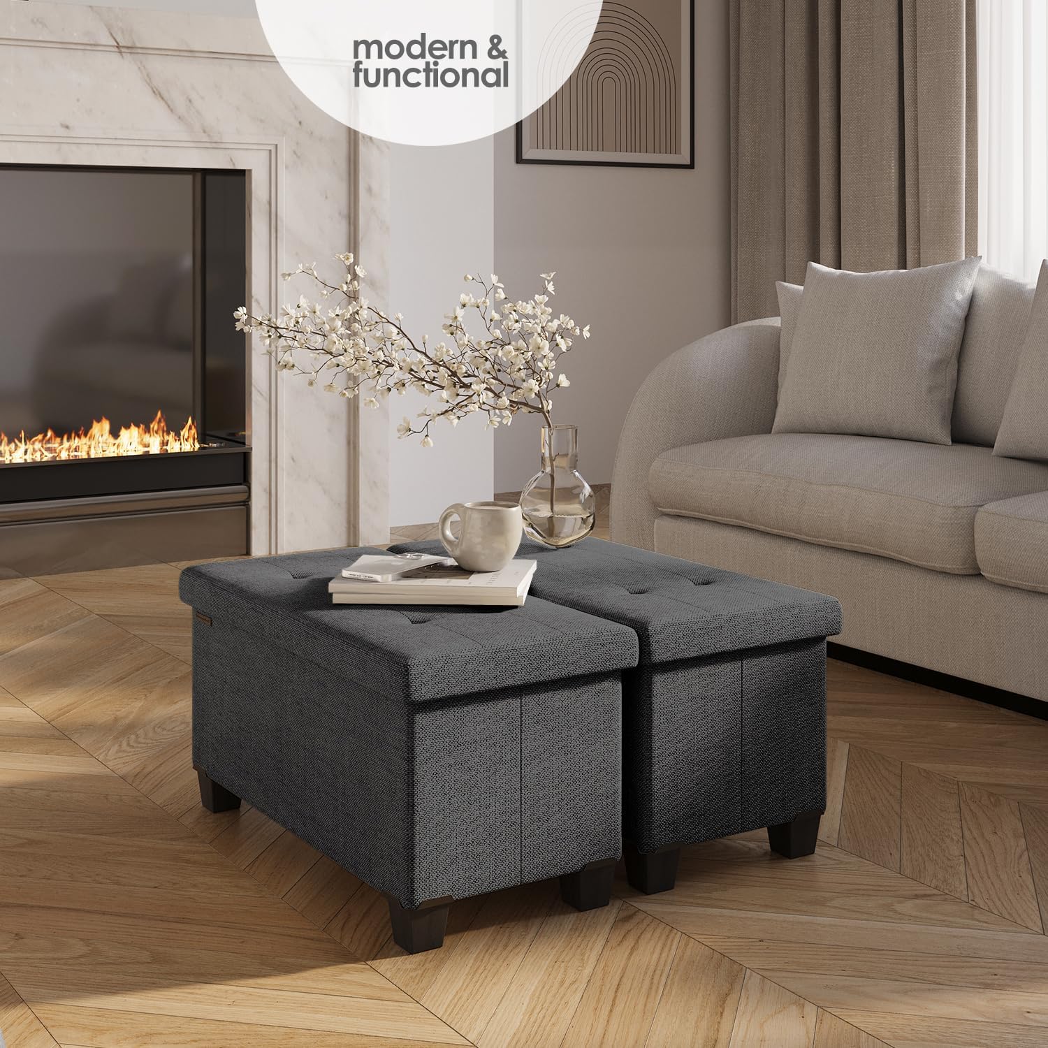 - TUFTED OTTOMAN BENCH WITH STORAGE: Our foot rest ottoman with storage for living room decor transforms your space and reduces clutter, and can be used as a storage ottoman coffee table or additional seat, supporting a max weight of 660 lbs.