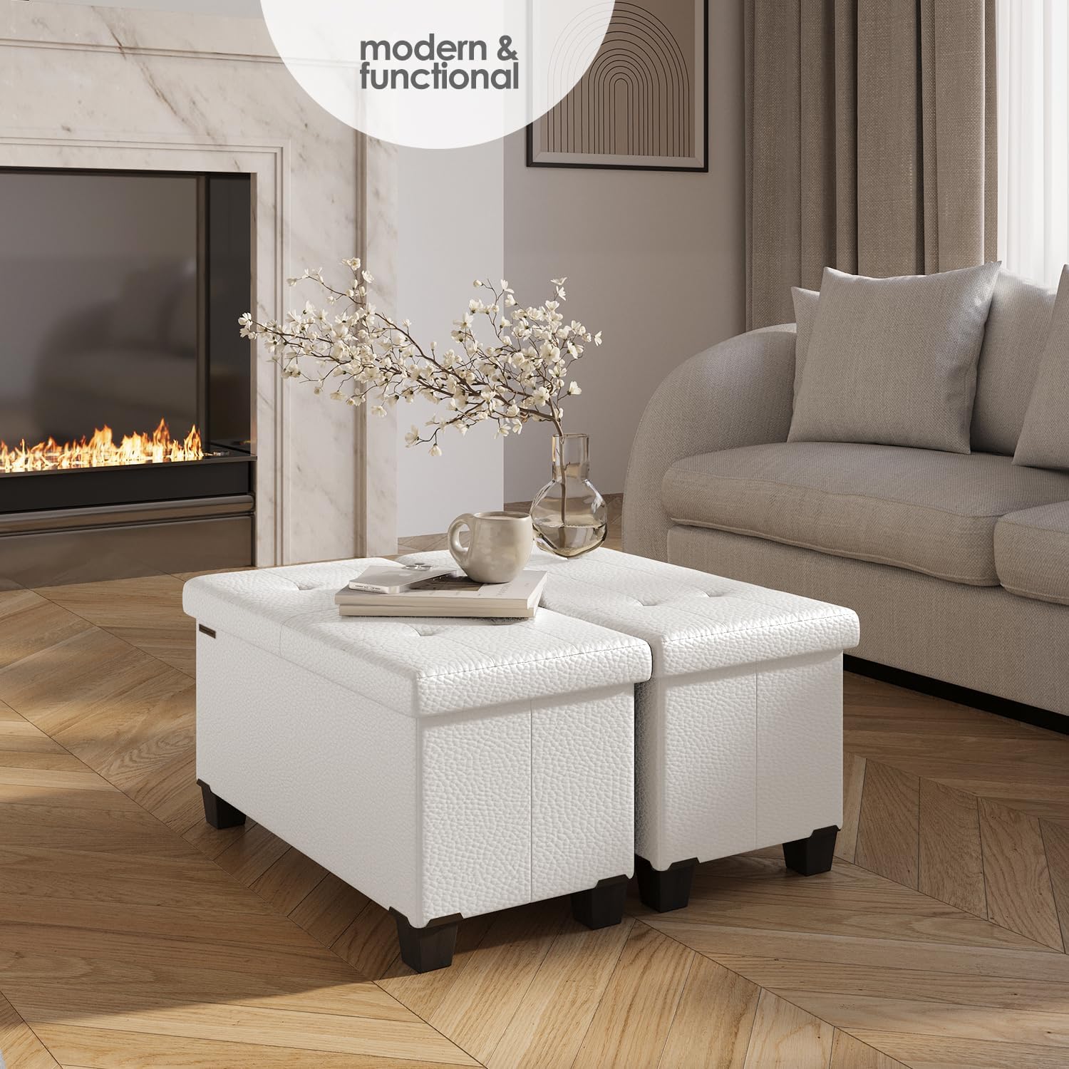 - TUFTED OTTOMAN BENCH WITH STORAGE: Our foot rest ottoman with storage for living room decor transforms your space and reduces clutter, and can be used as a storage ottoman coffee table or additional seat, supporting a max weight of 660 lbs.