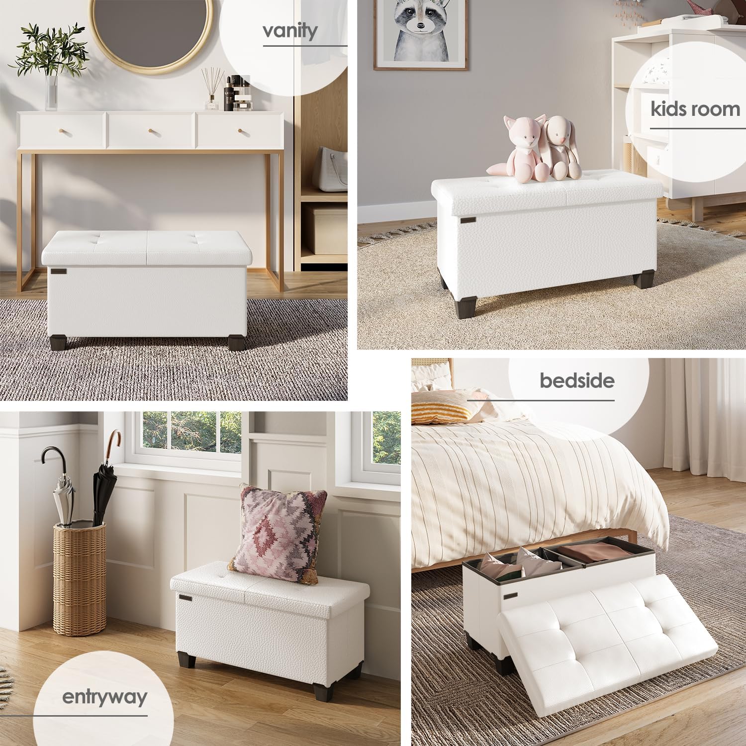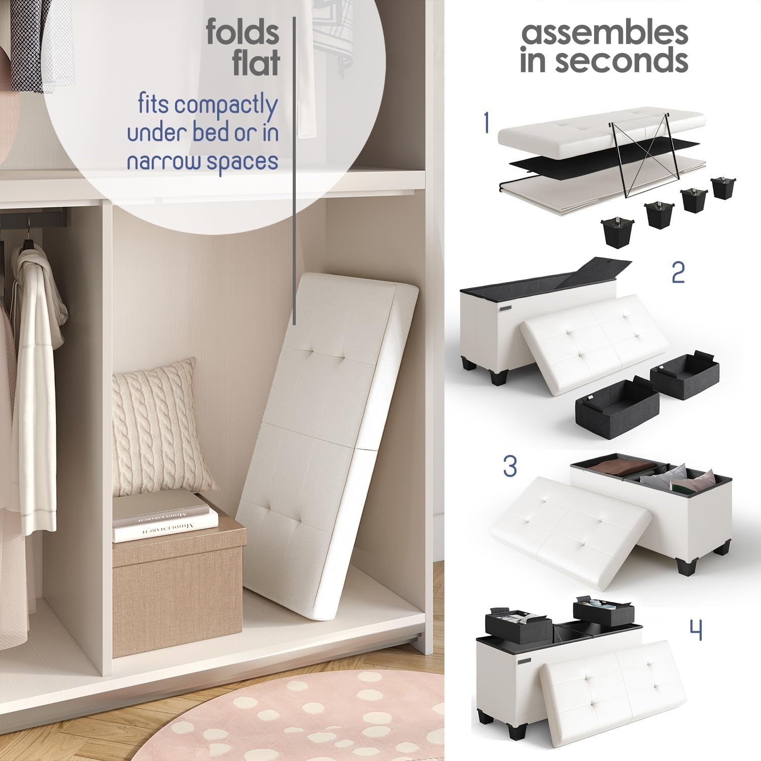 STORAGEBUD Storage Ottoman Bench with Bins, 30-in Storage Bench for Bedroom End of Bed, Folding Foot Rest Ottoman for Living Room Max 660lbs, Faux Leather Ottomans, Cream