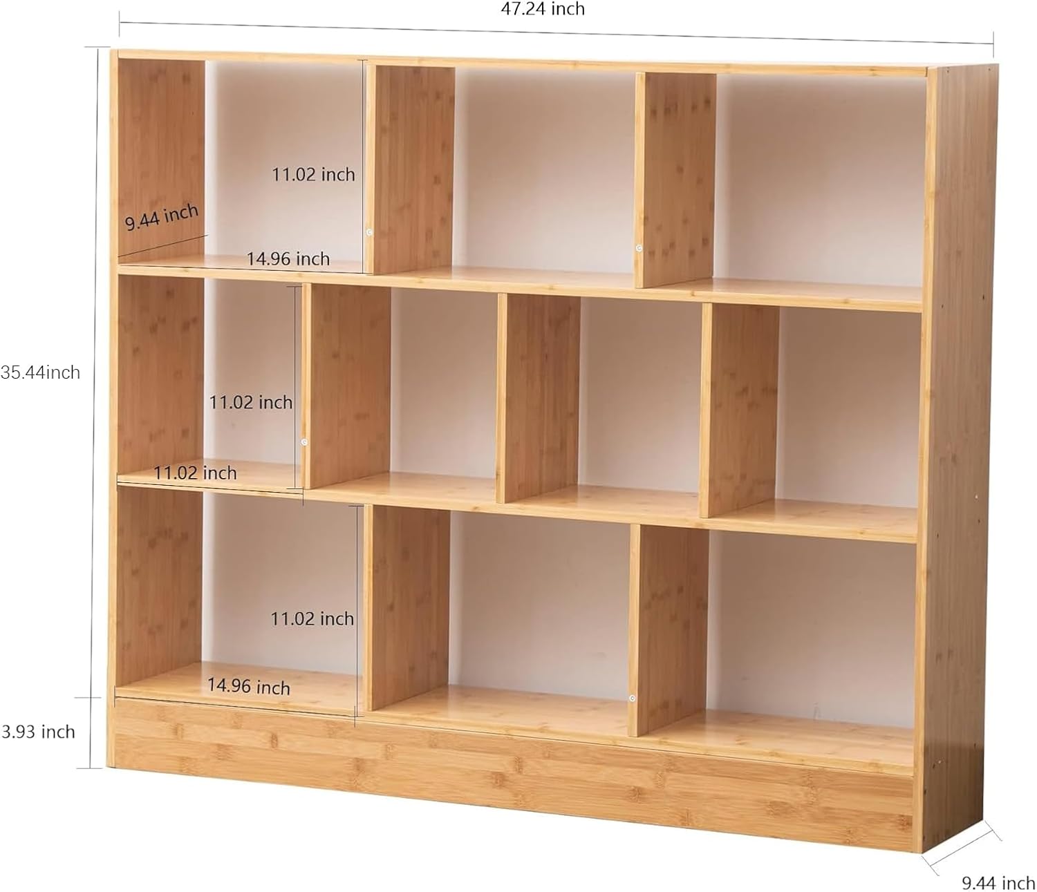 - 💛【ECO-friendly and Health 】:Crafted from 100% bamboo material, our bookcase reflects the design tradition of eco-friendly furniture. Bamboo is a rapidly regenerating plant, making it an environmentally conscious choice. Not only is this 10 cube bookshelf durable, but it also boasts a sleek, modern design that complements any decor.