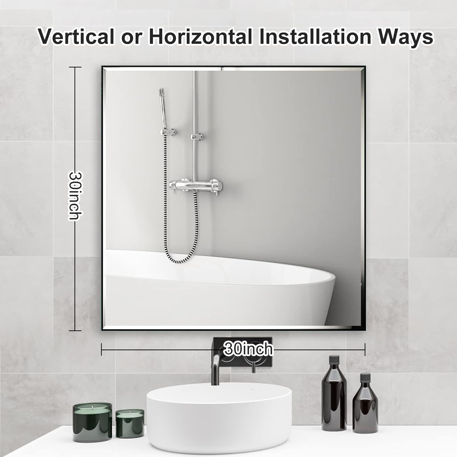 30x30 Inch Black Mirror with Beveled Trim, Aluminum Frame Bathroom Vanity Mirror, Copper-Free Mirror, Rectangle Wall Mounted Mirror, Modern Rectangular Mirror Horizontal or Vertical
