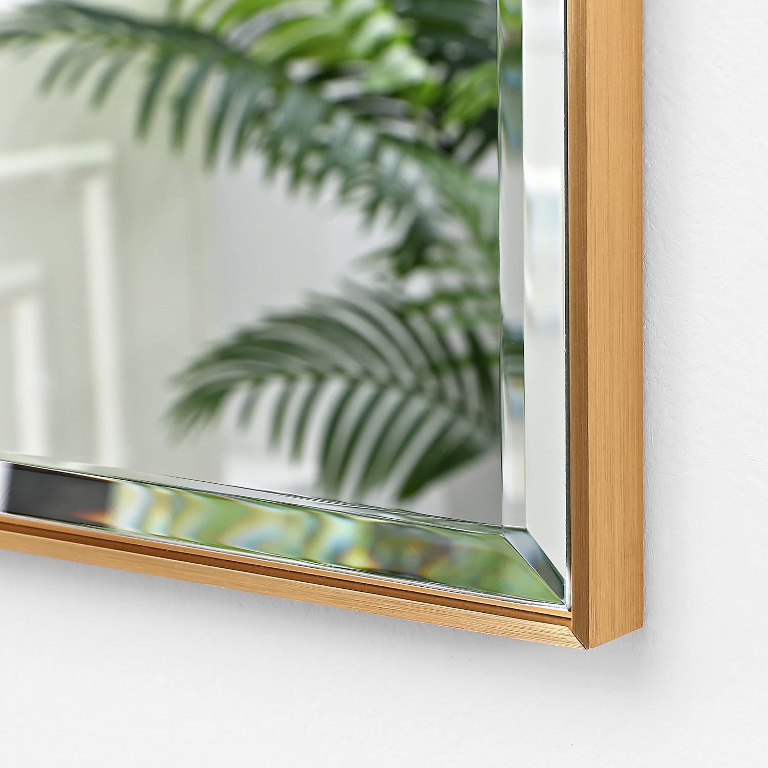 30x30 Inch Gold Mirror with Beveled Trim, Aluminum Frame Bathroom Vanity Mirror, Copper-Free Mirror, Rectangle Wall Mounted Mirror, Modern Rectangular Mirror Horizontal or Vertical