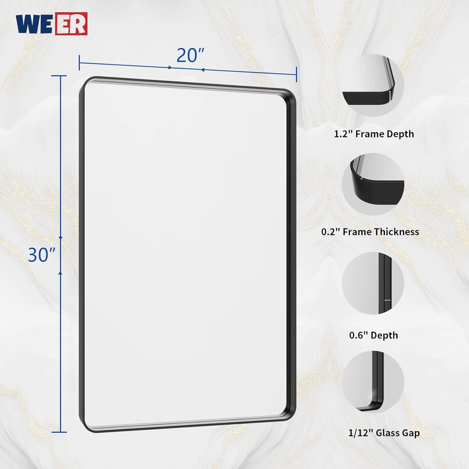 - 【Durable Black Metal Framed Mirror】: WEER black bathroom vanity mirror is made of premium alumium alloy frame, which is anti-rust and non-deformed. Practical rectangle rounded corner mirror with simple classic clean line features the modern and industry style;