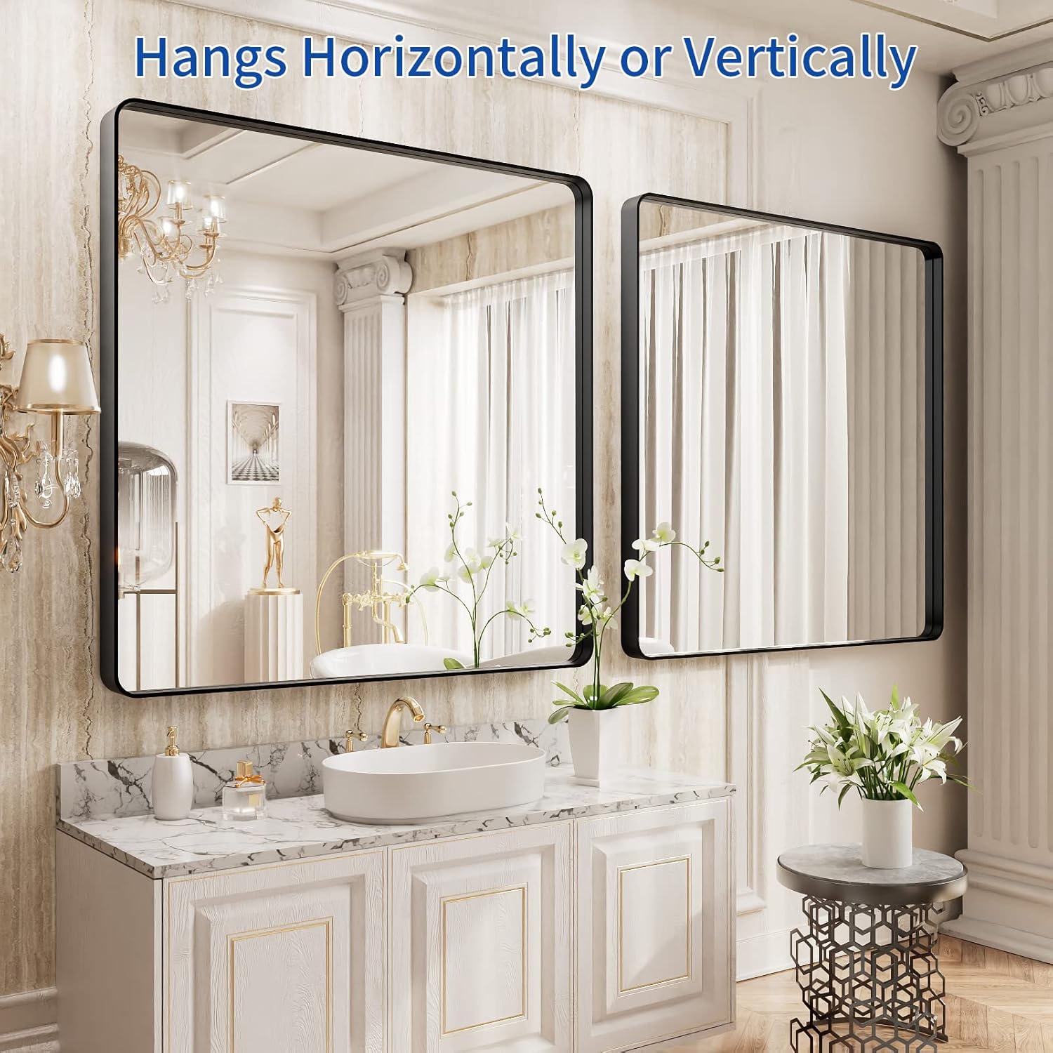 WEER 36X36 Inch Black Metal Framed Bathroom Mirror, Matte Black Bathroom Vanity Mirror, Rectangular Black Wall Mirror for Bathroom, Tempered Glass, Rounded Corner, Hangs Horizontal or Vertical