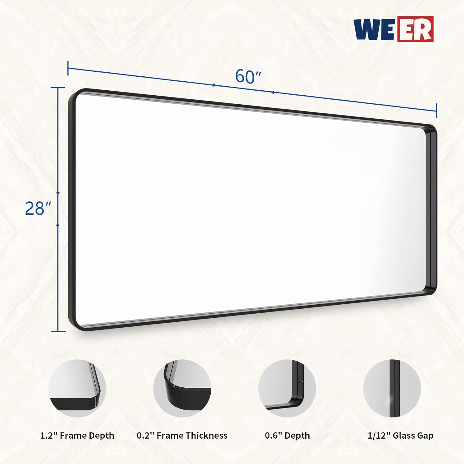 - 【Shatterproof Tempered Glass】: All WEER matte black mirror for bathroom is built with 4MM tempered glass which is shatter-proof, burst-proof and more safer to use. The shatterproof film is the important layer that will not splash into pieces when it's broken;