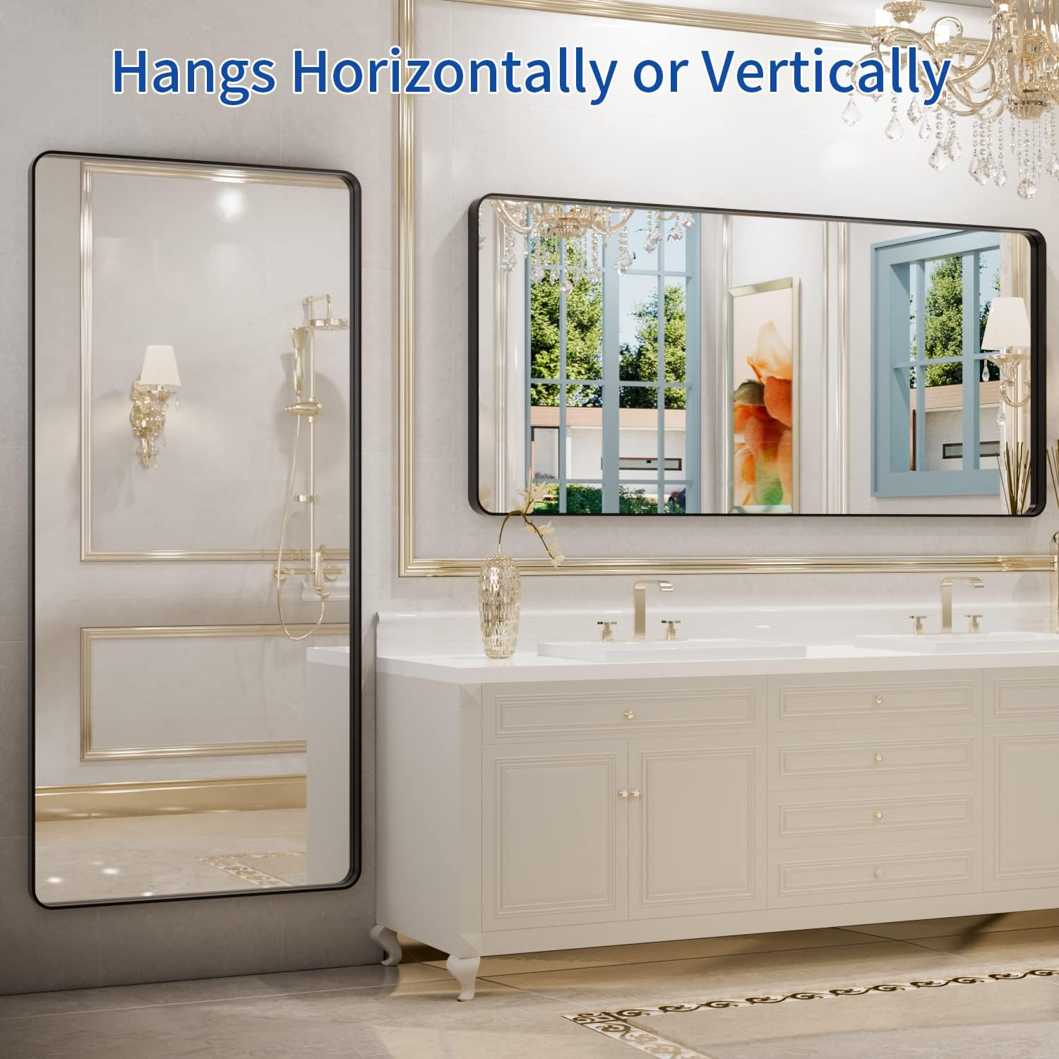 - 【Secure & Easy To Install 】: With the Z-bar wall brackets, it's easy to install the mirror and no need to align small holes like other mirrors. The bracket is sturdy enough to support the weight of the mirror. The bathroom mirror can be hung vertically or horizontally. Mounting hardware included;