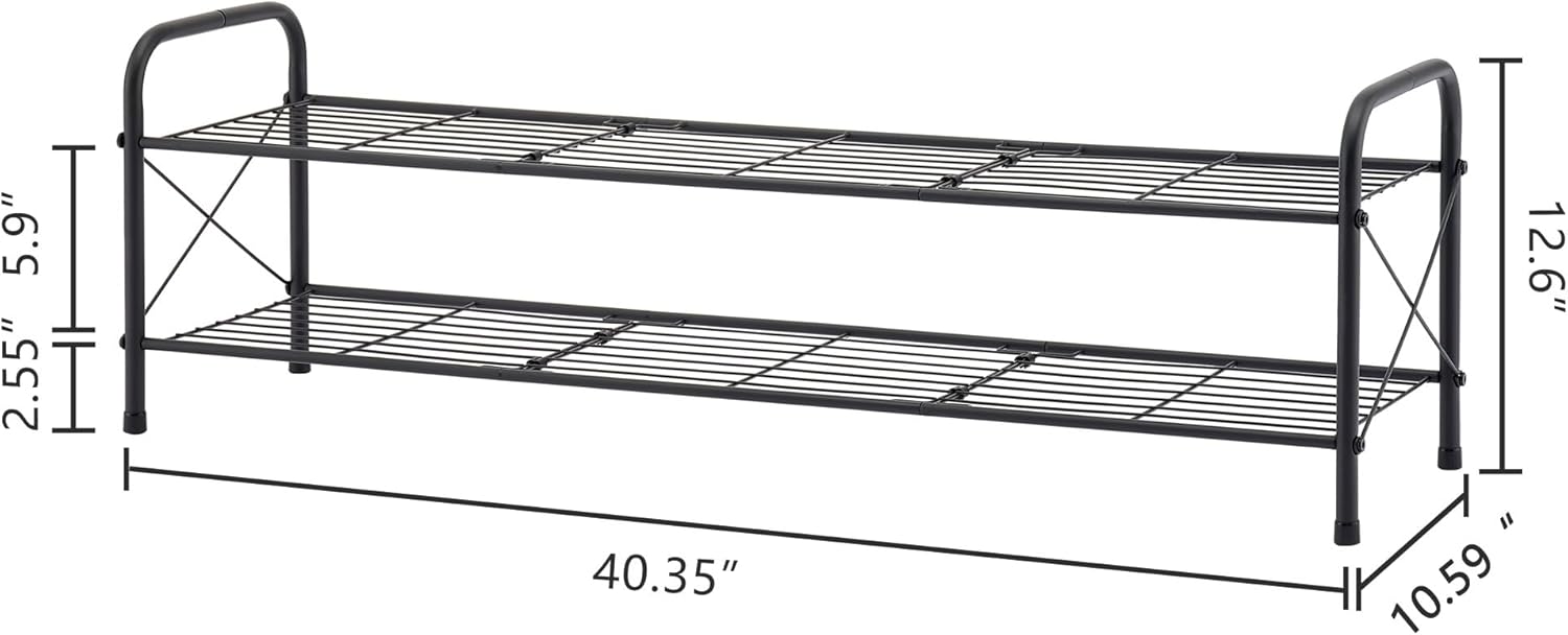 Hoctieon 2 Tier Shoe Rack for Closet, Durable Mesh Style Shoe Rack, Entryway Shoe Shelf, Shoe Storage Organizer for Hallway, Bedroom, Living Room, Wardrobe, Black