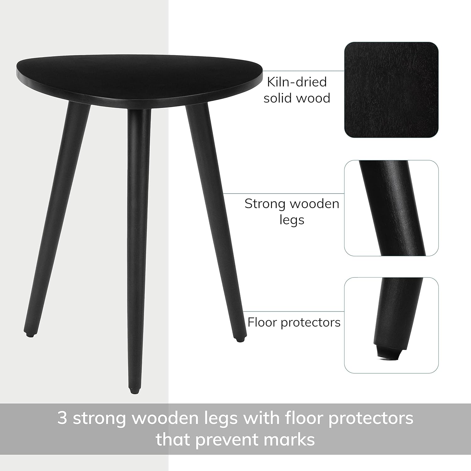 MH London Tri Pin Side Table I Handmade Natural Mango Wood, Naturally Moisture Resistant, Maintenance Free I 16" x 16" x 18" I Tora, Black