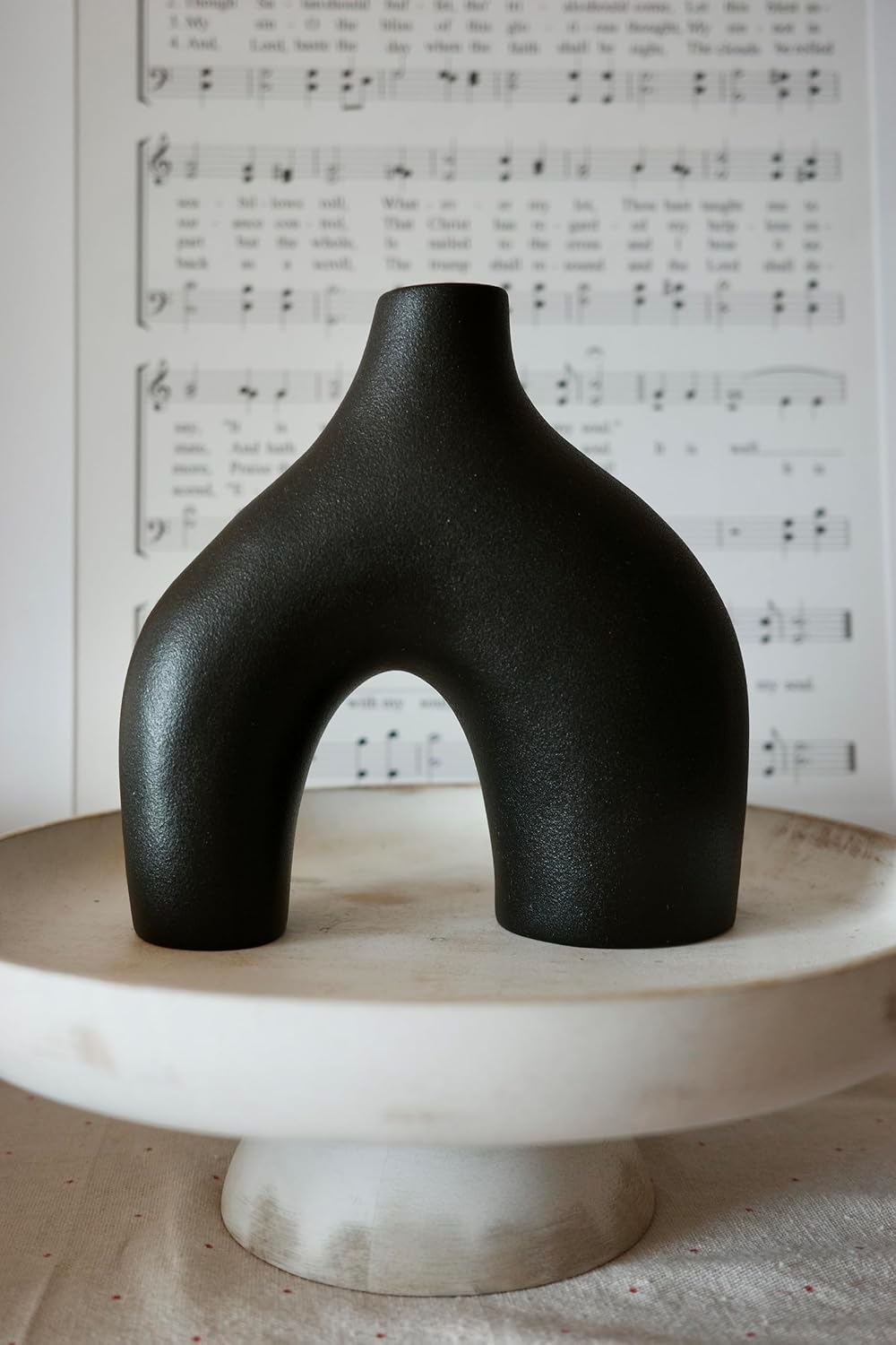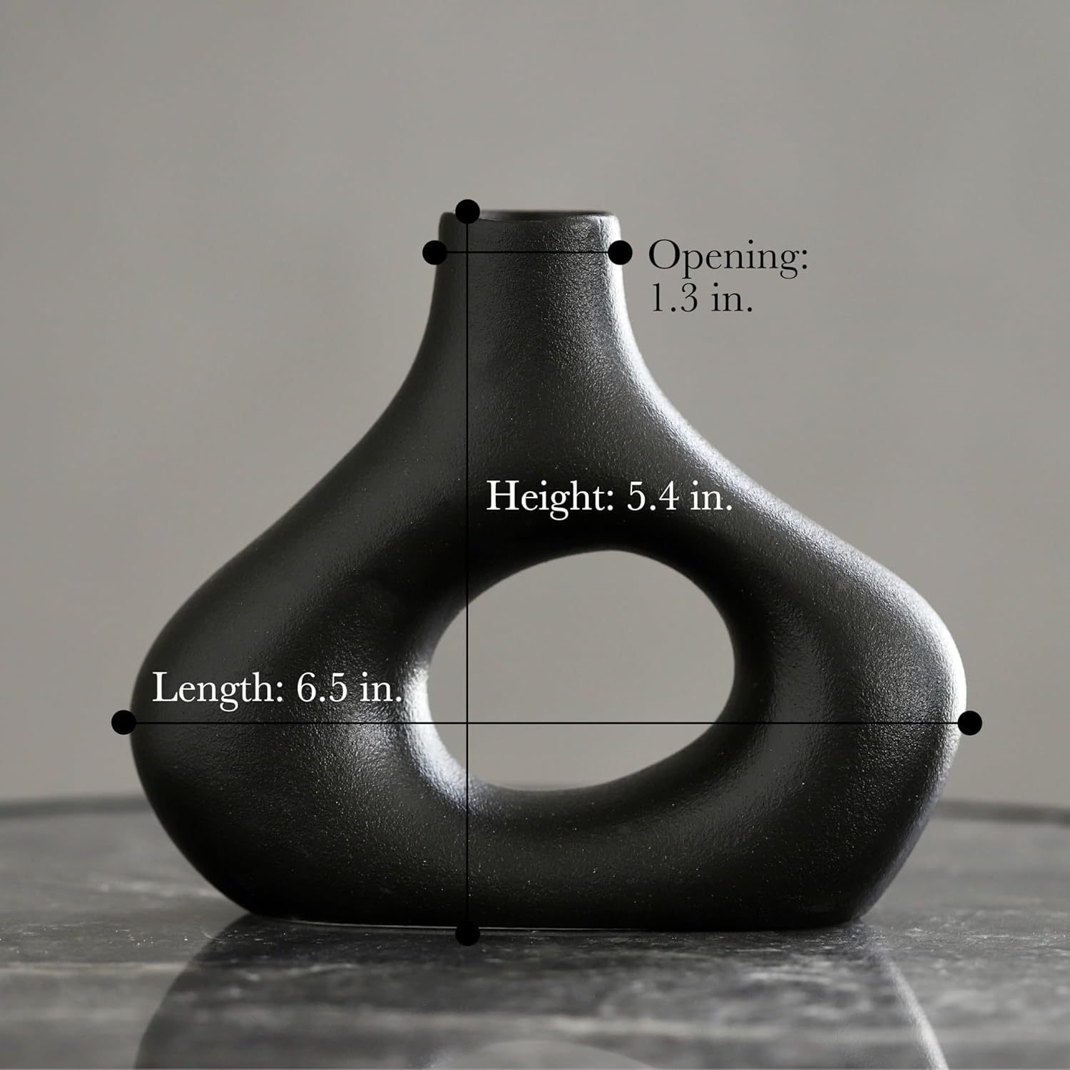 Carrot's Den Donut Vase, Set of 2 - Minimalist Nordic, White Ceramic Hollow Donut Vase Decor | Table Centerpiece, Olive Plant, Wedding, Living Room, Bookshelf, Office, Modern Home, Entryway, Console