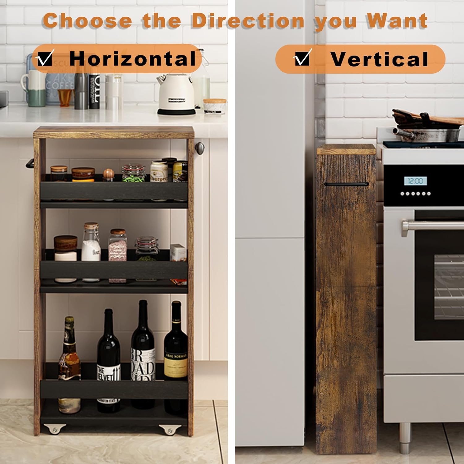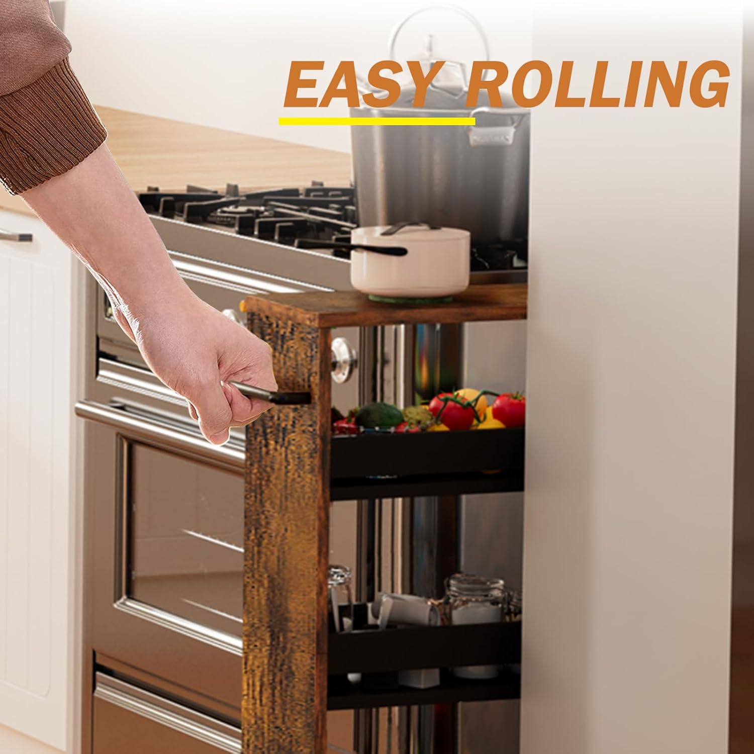 - 【Narrow Spaces Storage Design】This 4-tier storage cart is 5.5 inches wide and has plenty of storage space. It has 4 smooth wheels and 1 convenient handle. Can be used in closets, kitchens, bathrooms, garages, laundry rooms, offices, or washing machines and dryers.