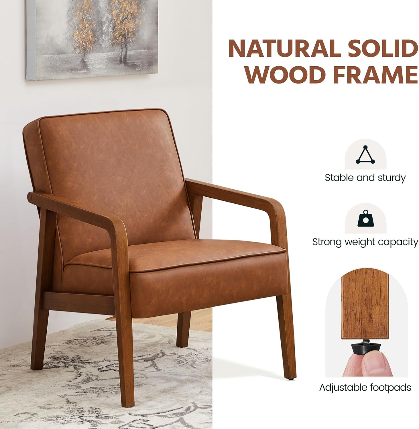 Yaheetech PU Leather Accent Chair, Mid-Century Modern Barrel Chair with Wooden Frame and Soft Thick Padded for Living Room Bedroom Home Office, 2 PCS, Light Brown