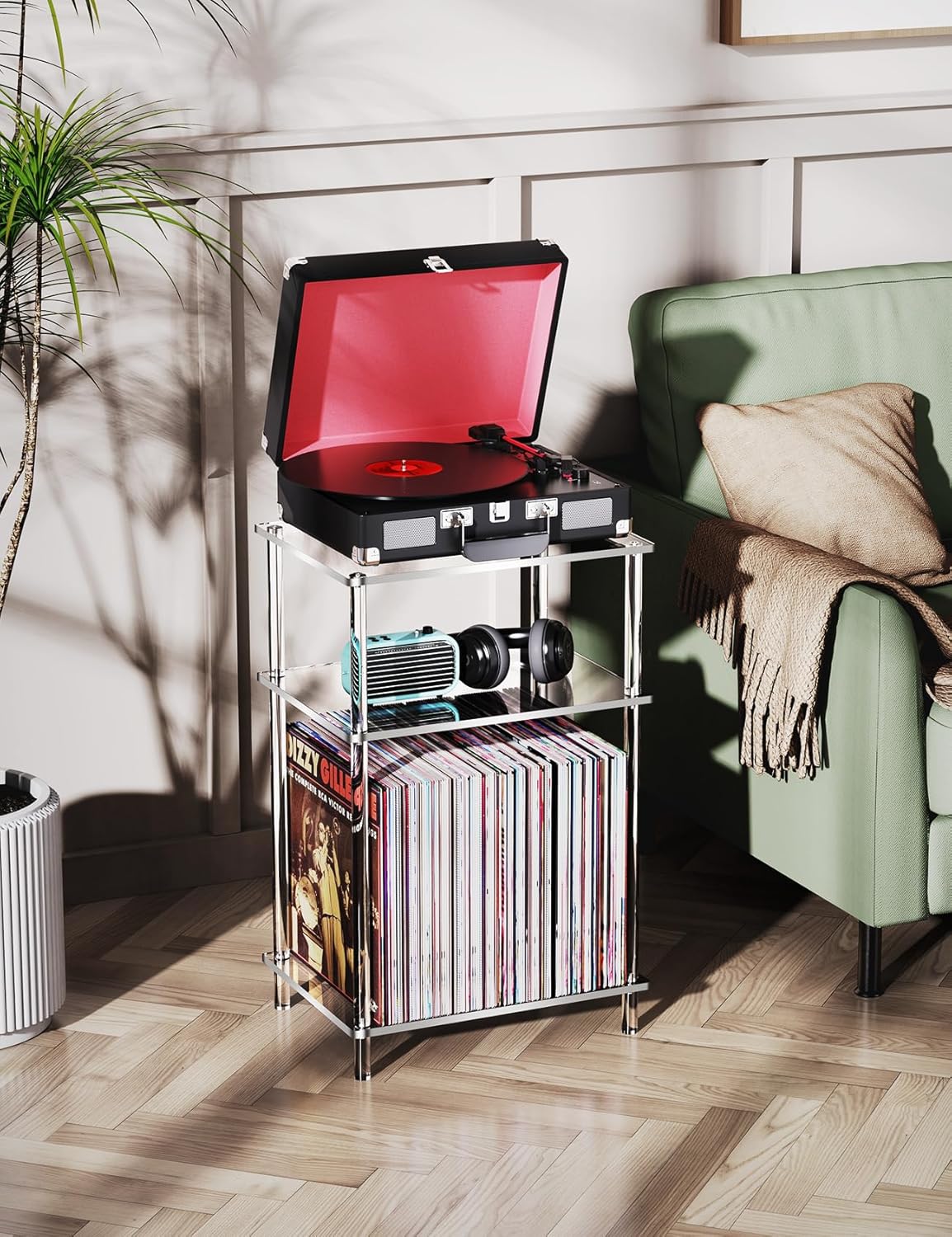 Acrylic Side Table Clear 3-Tier End Table for Living Room, Office, Hallway, Bedroom Small Bedside Table