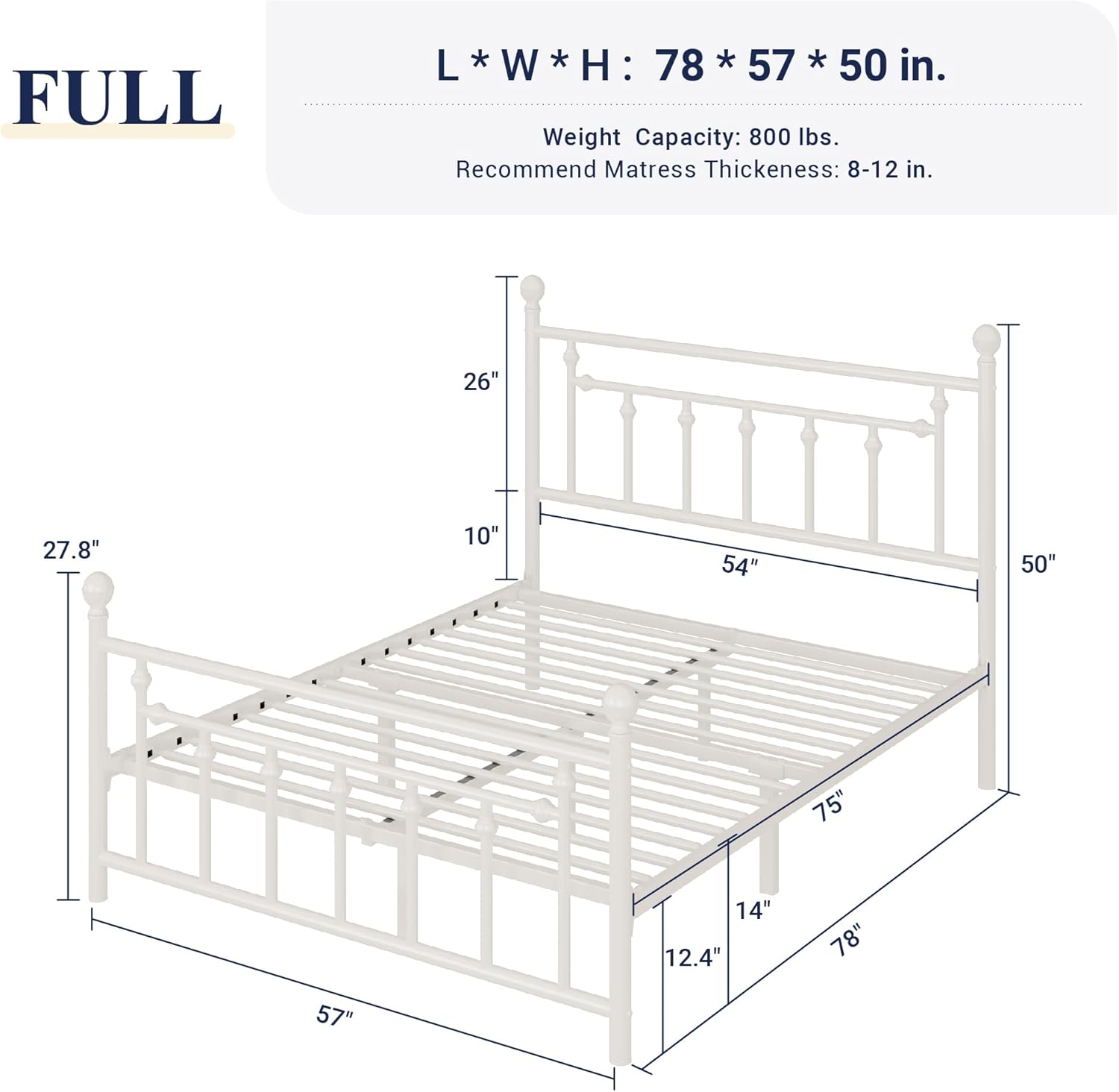 Allewie 14 Inch Full Size Metal Platform Bed Frame with Victorian Vintage Headboard and Footboard/Mattress Foundation/Under Bed Storage/No Box Spring Needed/Easy Assembly/Noise Free/White