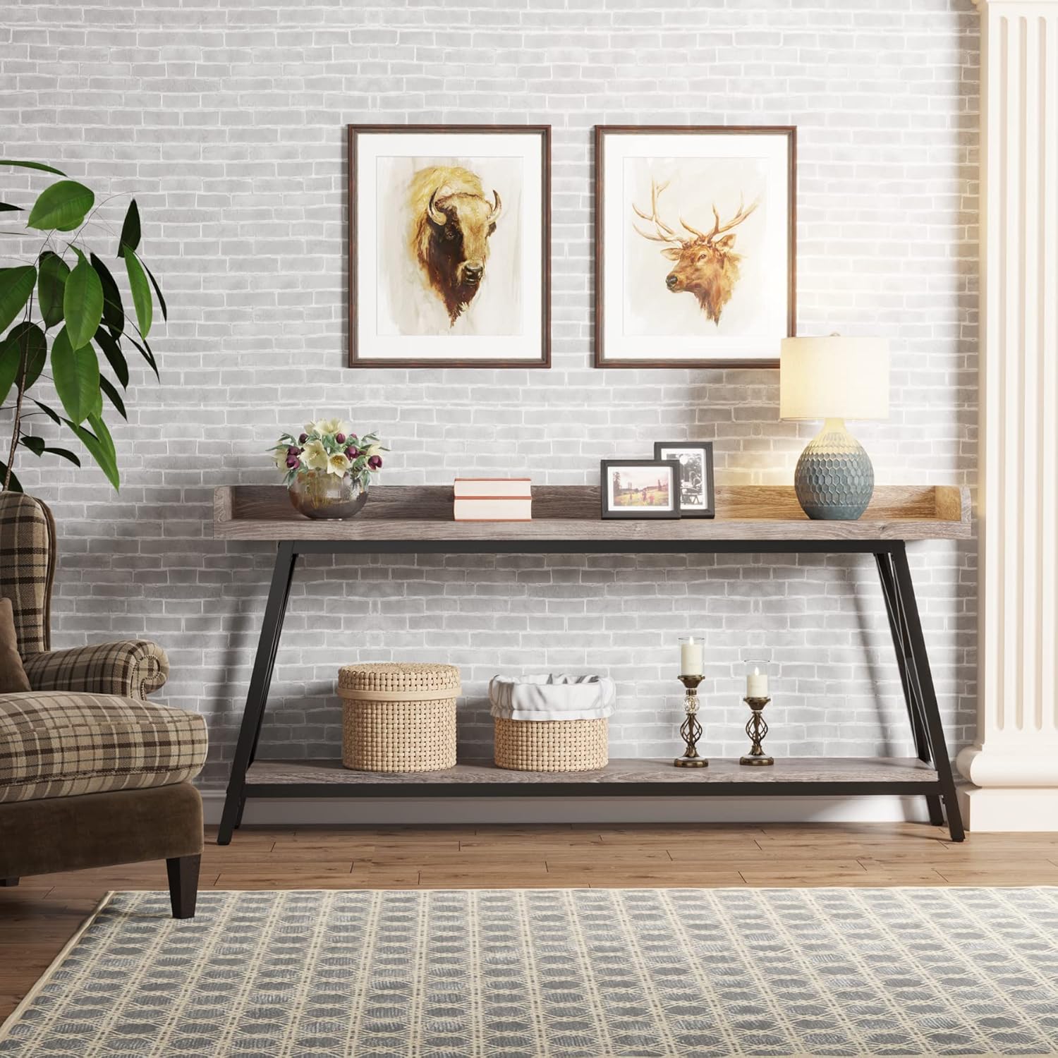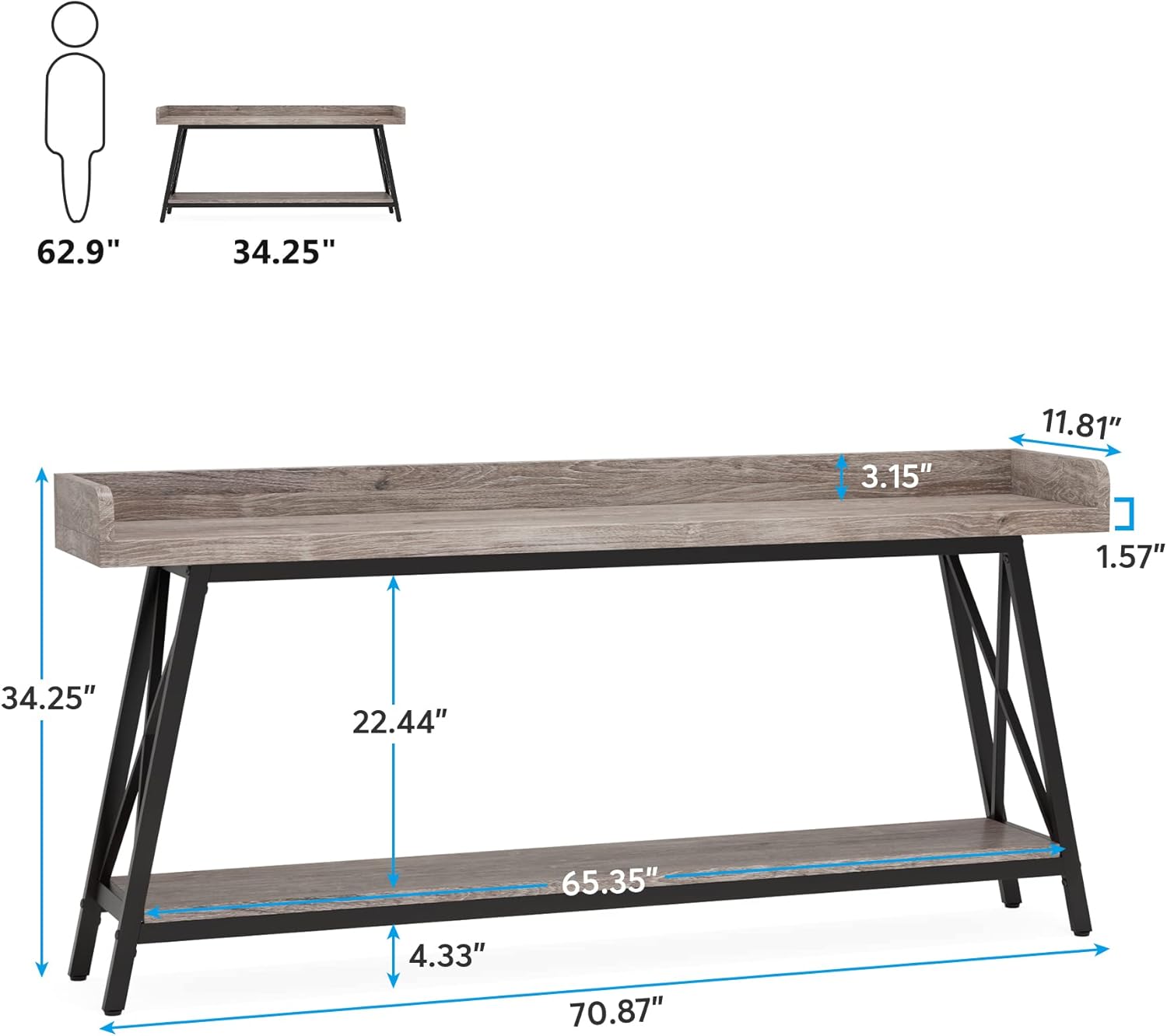 Tribesigns 70.9 inch Extra Long Console Table Behind Couch, Rustic Industrial Sofa Table for Living Room, Narrow Entryway Hallway Long Bar Table (Grey)