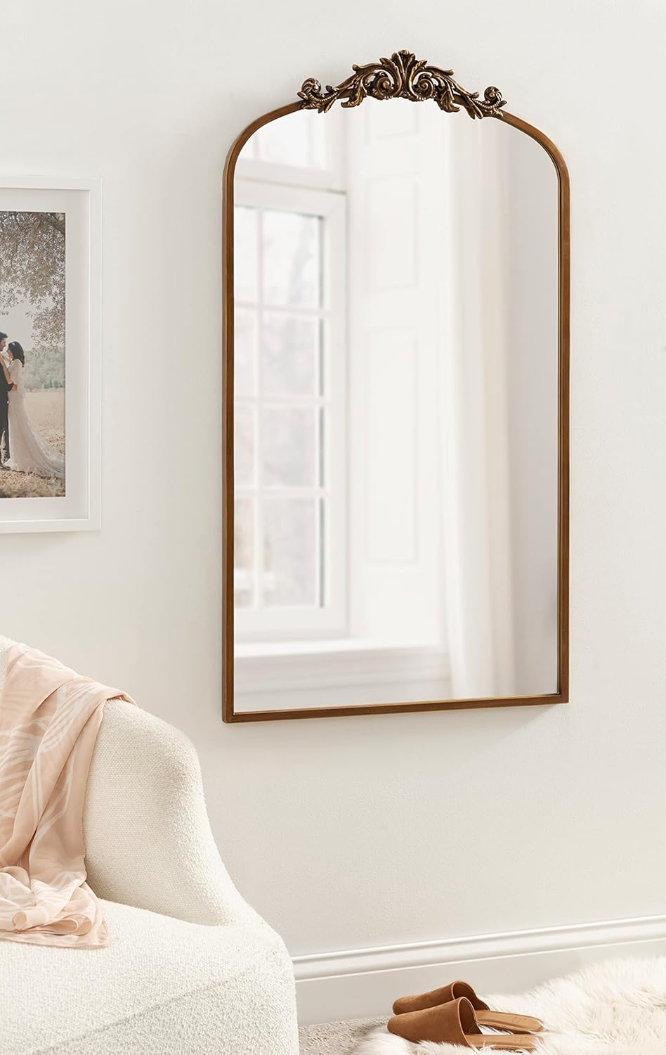 - Ornate Mirror: The Arendahl wall mirror features an ornate, baroque-inspired frame with a decadent garland overlay and arched shape to add elegant glamour to your home decor