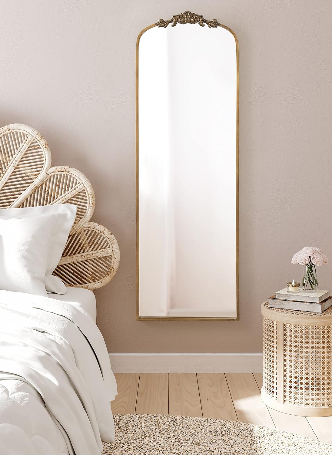 Kate and Laurel Arendahl Glam Arched Vintage Full Length Mirror; 18 x 58; Gold; Traditional Baroque Full Body Wall Mirror with Ornate Garland Inspired Crown