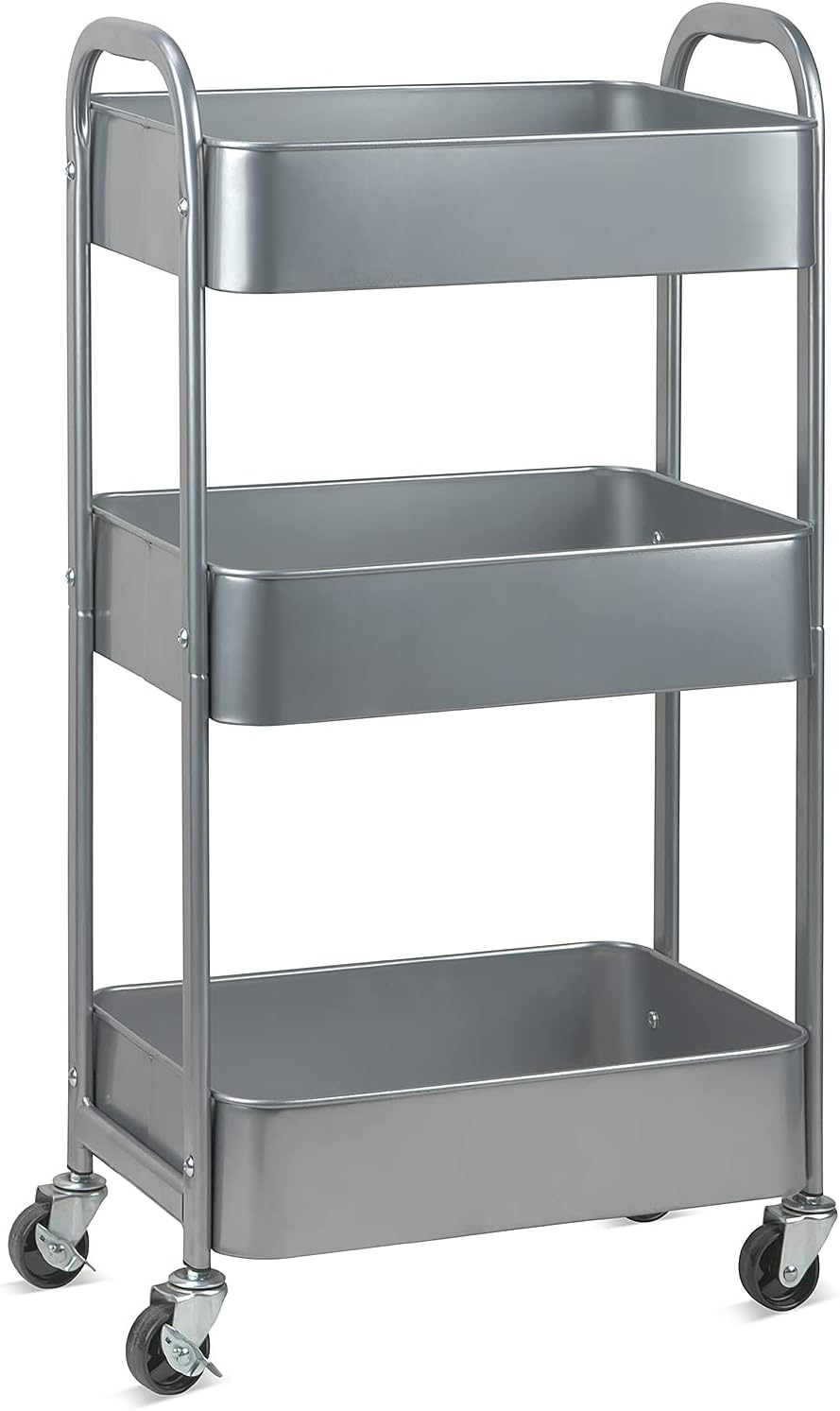 MAX Houser 3-Tier Rolling Utility Cart with Caster Wheels,Easy Assembly, for Kitchen, Bathroom (Silvery-Grey)