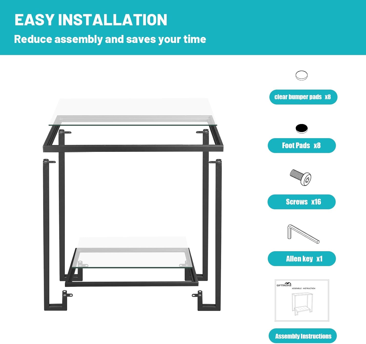 - STYLISH DESIGN: The black frame of the rectangular table shows its elegance, complements the glass top, and its excellent transparent visual effect can match most furniture. The bedside table adopts a unique hidden interface installation design, which hides all installation components inside, making its appearance more tidy and beautiful.