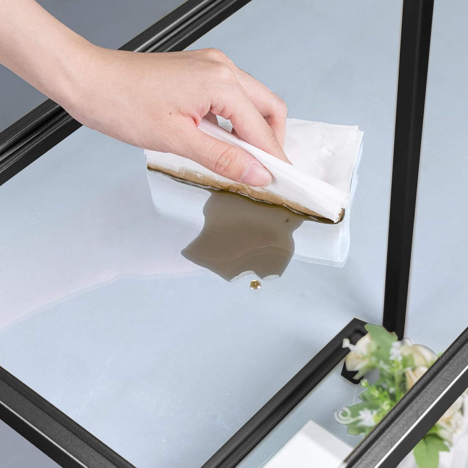 - STURDY: The black side table is made of high-quality metal frame and sturdy glass, thickened metal frame legs provide stable support. These clear bumper pads under the glass of the rectangular coffee table can effectively protect the glass from being scratched, and the equipped foot pad can prevent the floor from being scratched.