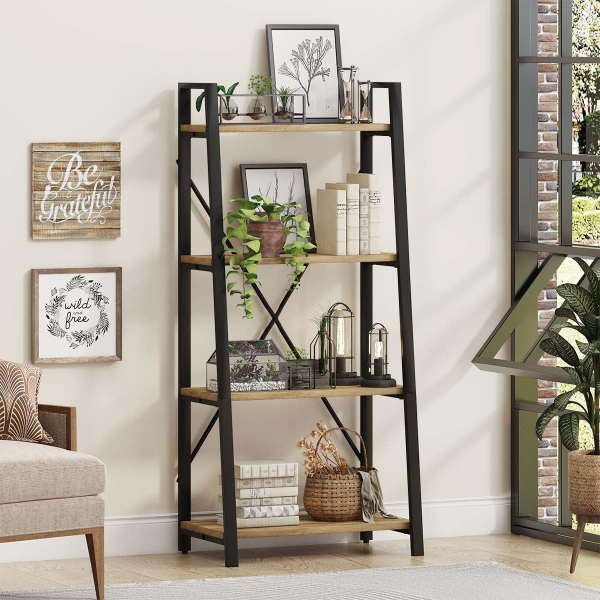 - Industrial and Stylish Style: Simple and clean design of this ladder bookcase adds an industrial ambience to any space, making it the perfect addition to living room, bedroom, kitchen, office or balcony. Crafted with FSC-certified wood, our product supports sustainability and promotes responsible forest management.