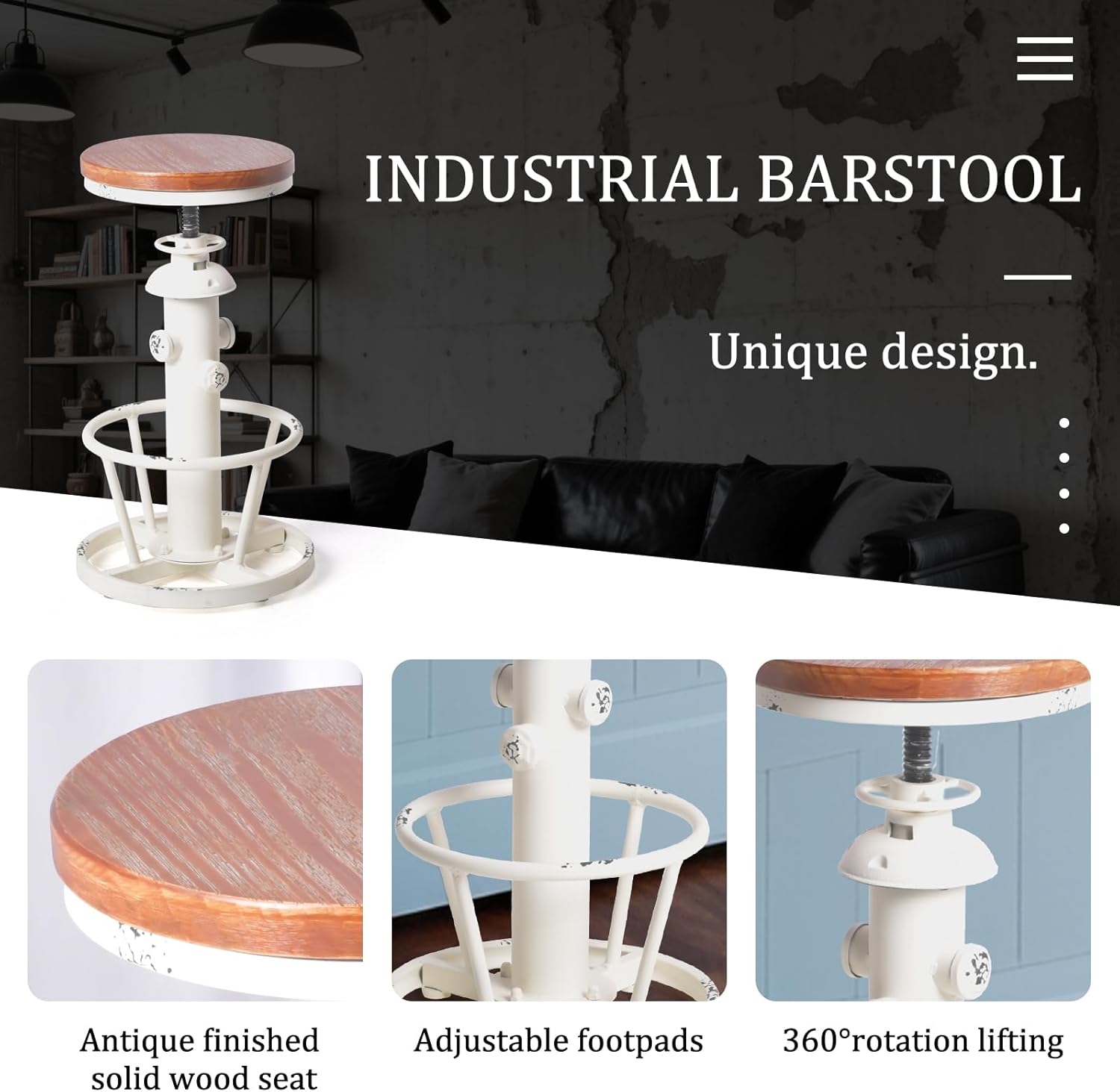 - ✔With brown seat and antique white base designed, this vintage industrial bar stool,bring traditional feel over to the island, goes really well with farmhouse VINTAGE STYLISH decor.