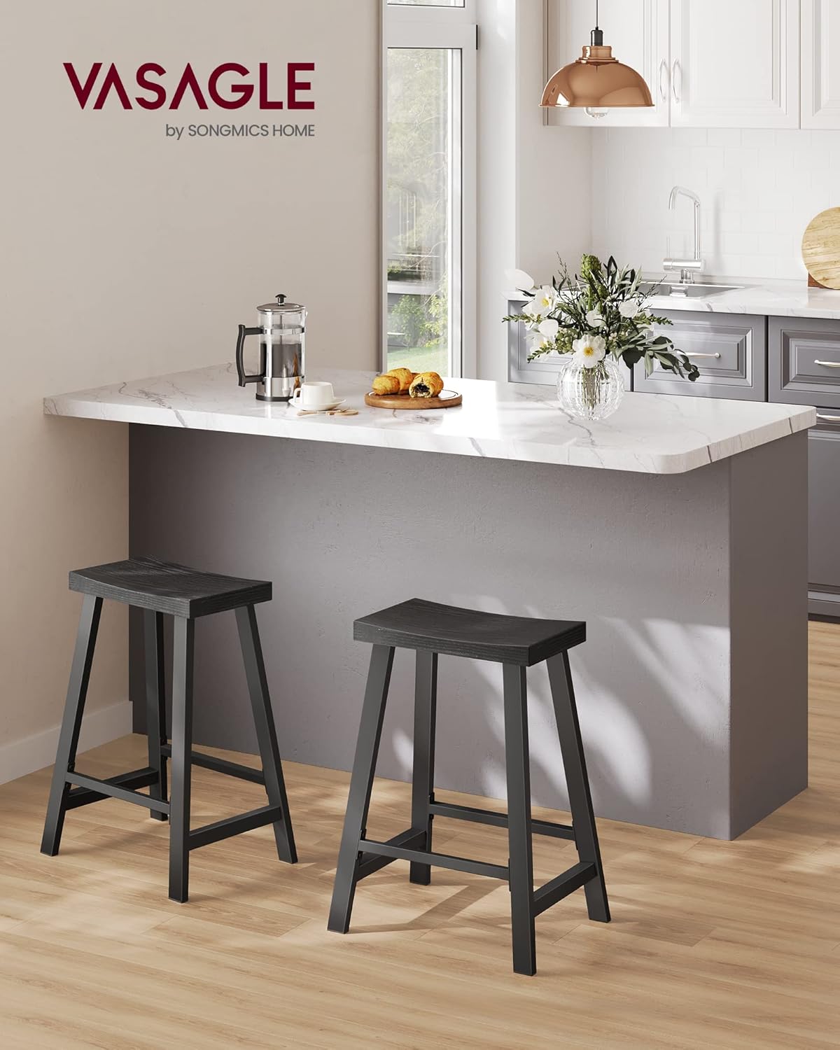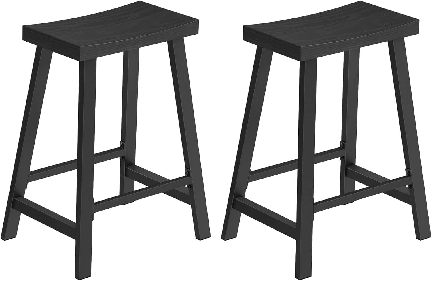 VASAGLE Bar Stools, Set of 2 Bar Chairs, Kitchen Breakfast Bar Stools with Footrest, 23.6 Inches High, Industrial in Living Room, Party Room, Black ULBC074B56