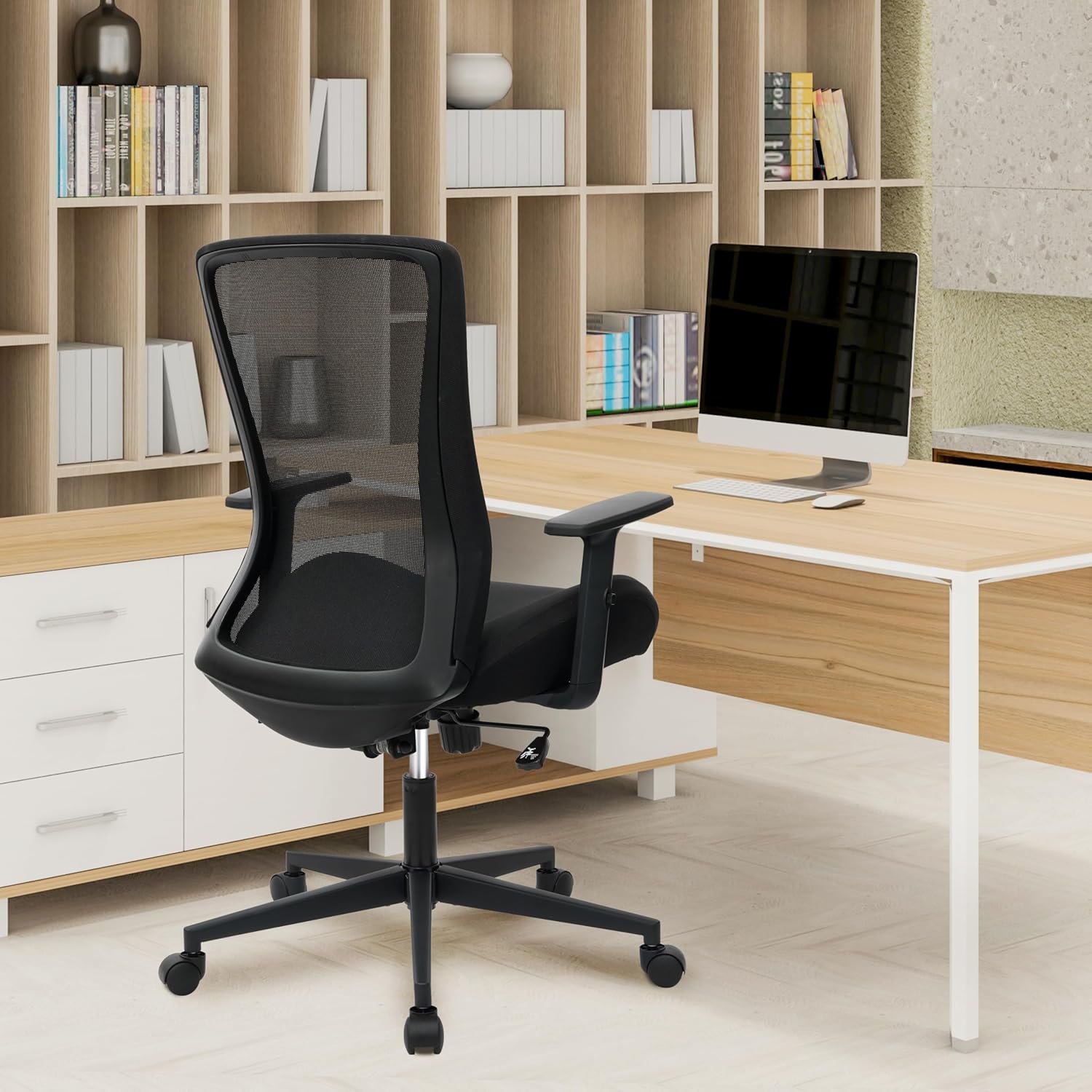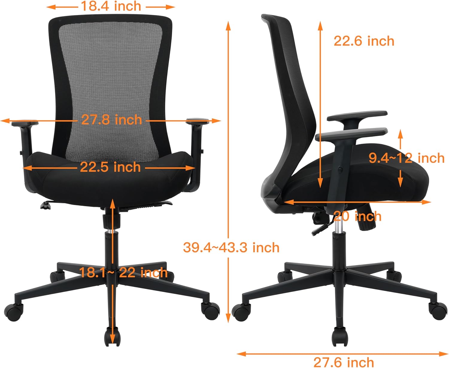 - 【ERGONOMIC OFFICE CHAIR】The gas lift and tilt-tension mechanism allows to adjust height, seat tilt and tilt tension. 2D armrests that are adjustable toward the up and down to give you the best seating experience every time you use it. The mid-back ergonomic desk chair perfectly fits the curve of your spine for better lumbar & cervical spine back support.