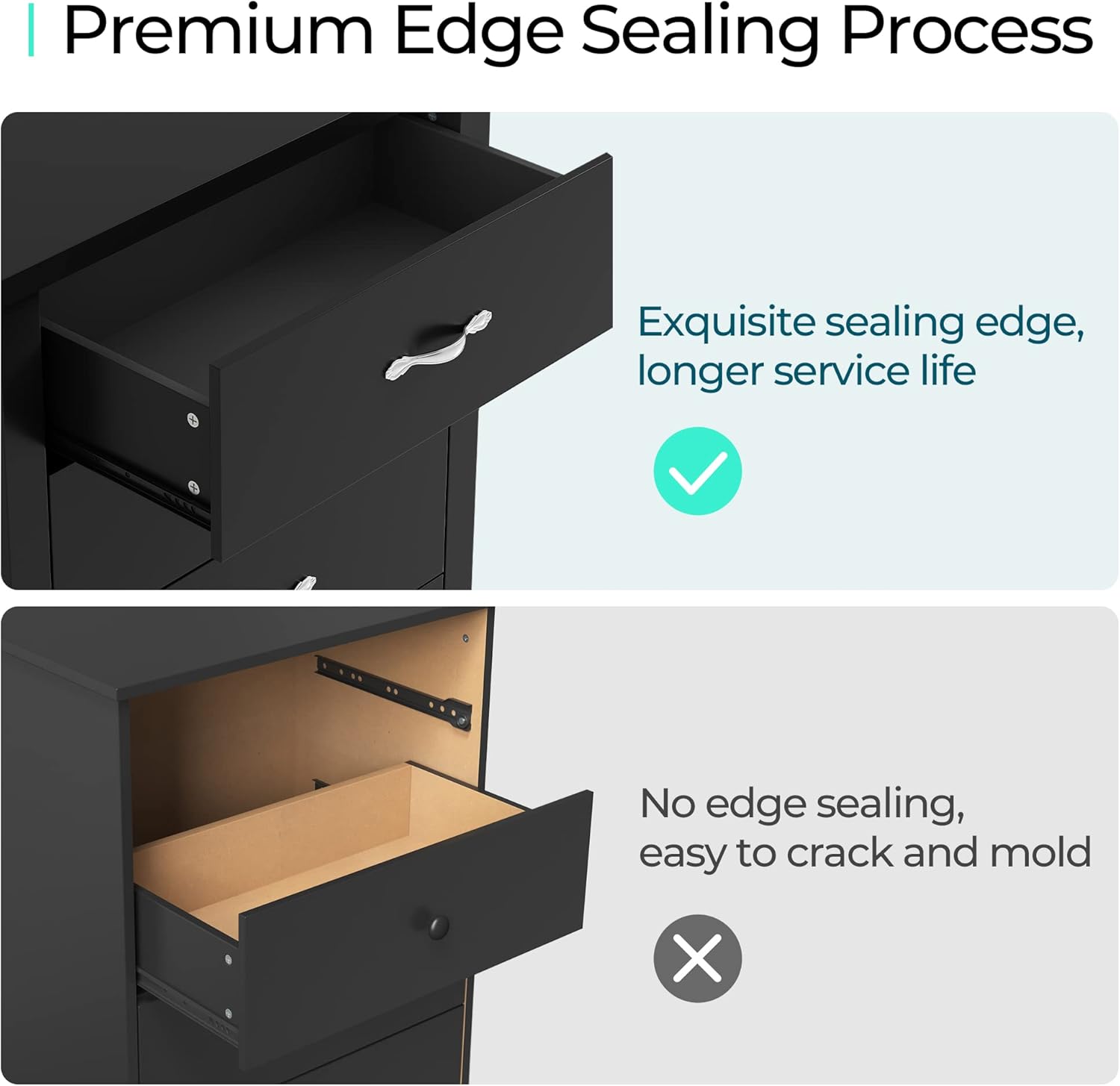 LINSY HOME 5 Drawer Dresser, Black Dresser for Bedroom, Modern Dresser Chest with Wide Drawers, Wood Storage Chest of Drawers for Nursery Kids Room Living Room