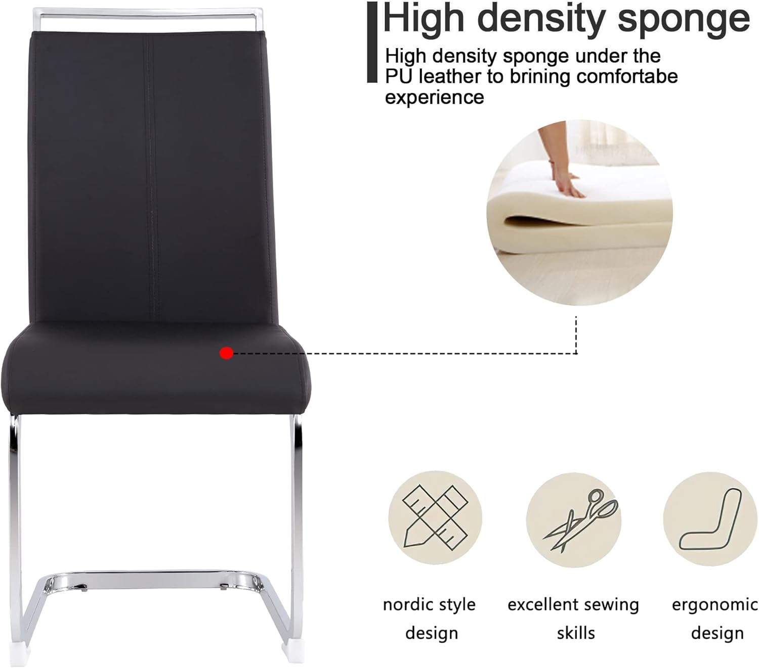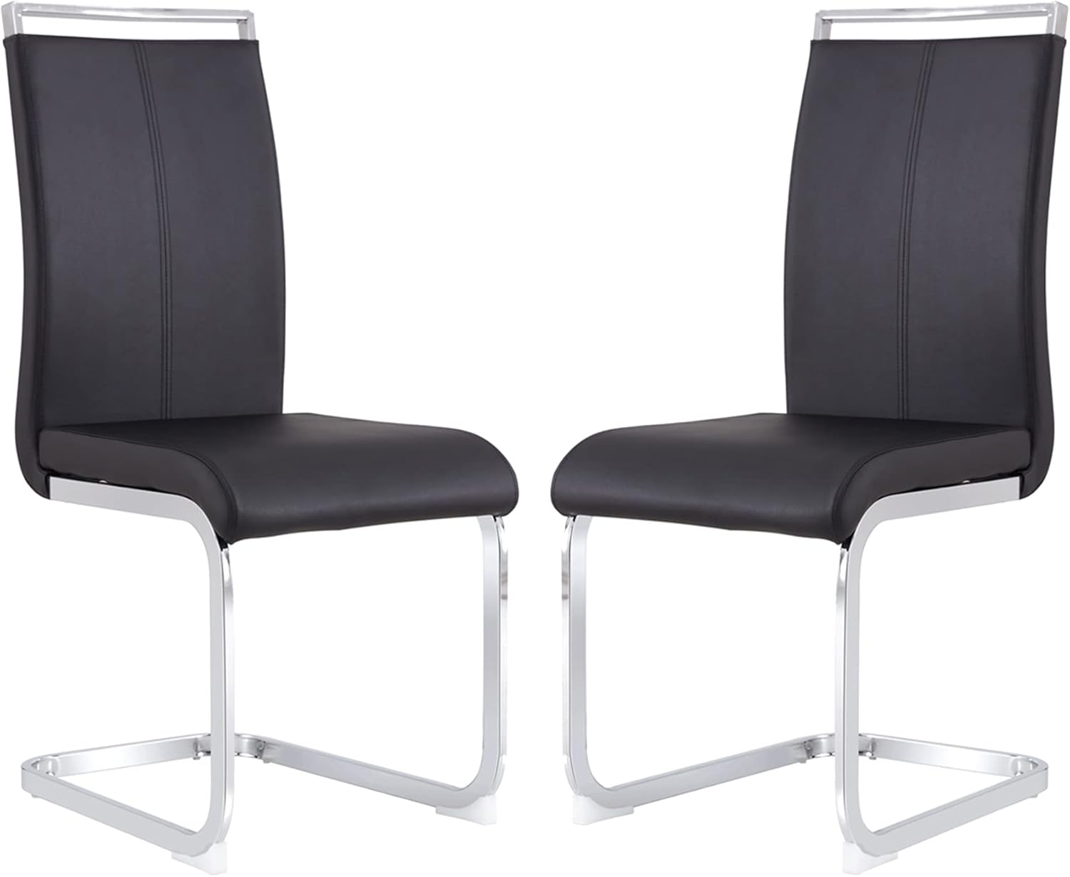 Dining Chairs Set, Kitchen Modern Metal Chairs with Faux Leather Padded Seat High Back and Sturdy Chrome Legs, Chairs for Dining Room (Black, Set of 2)