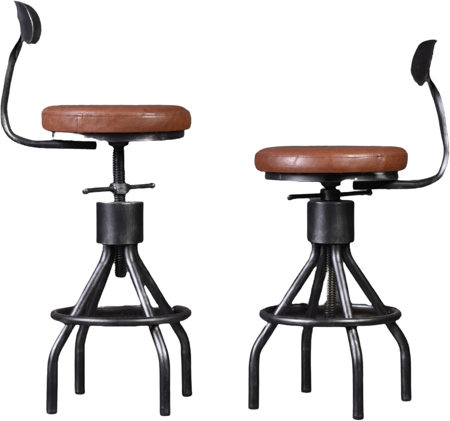 LOKKHAN Set of 2 Industrial Leather Bar Stools-Adjustable Swivel Metal Bar Stool-24-30 Inch Tall Seat Height Counter Height to Bar Height-Kitchen Stool Dining Chair,Cafe Stools with with Backrest