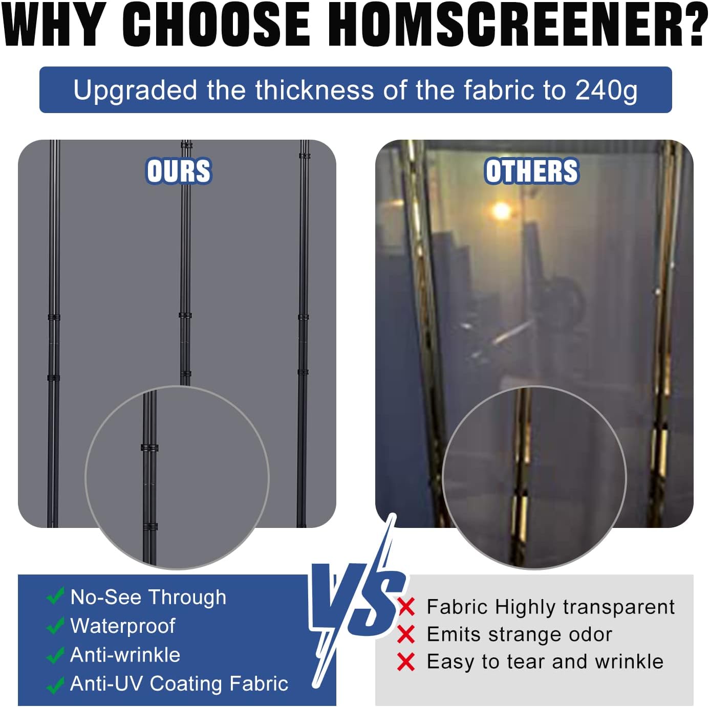 - Why HOMSCREENER: We are committed to providing premium room divider and satisfied after-service. Package included all the necessary accessories and installation manual. If any parts missing or damaged during transportation, do not hesitate to contact us for replacement