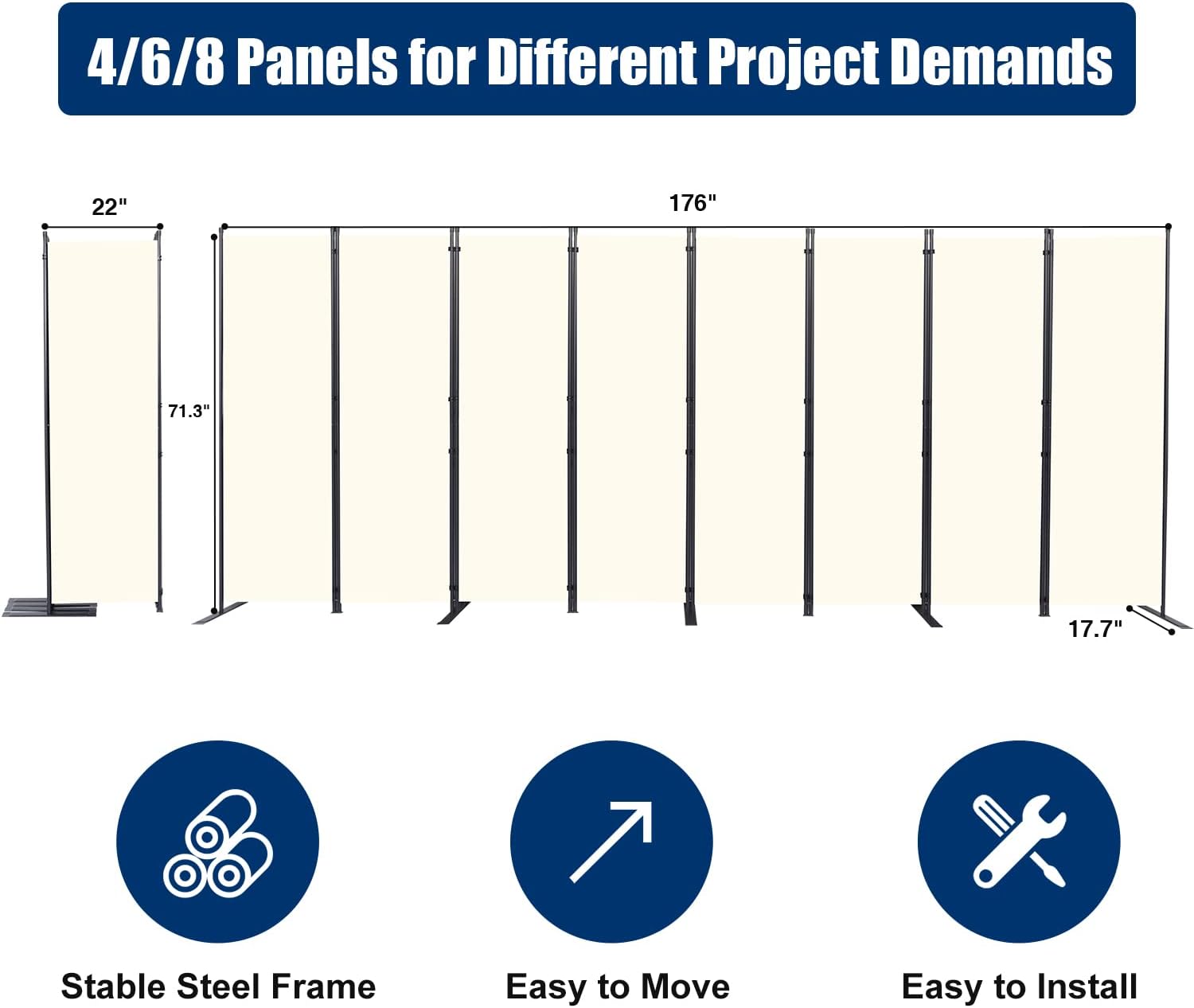 Room Divider 6FT Portable Room Dividers and Folding Privacy Screens, 176'' W Fabric Divider for Room Separation, 8 Panel Partition Room Dividers Freestanding Wall Divider Screen for Dorm Studio Office
