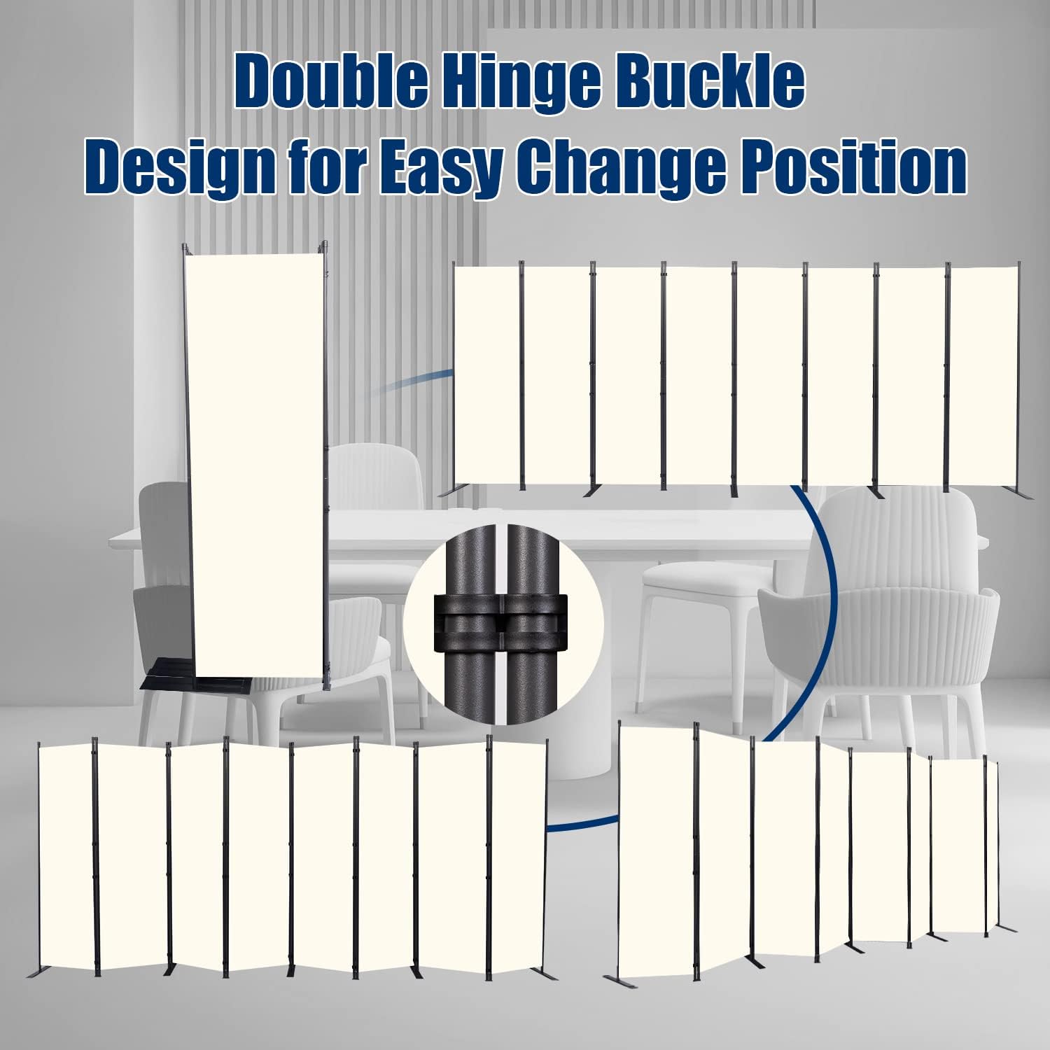 - Portable Moving and Folding Room Divider: Each portable room divider panel is connected by triple buckle hingles, so you can freely adjust the orientation of each panel screen to meet your needs, and connect multiple panels to create large temporary wall. They can also be easily folded up and stored in the garage when not in use. Folding size: 22''L x 71.3''H x 12.6''W, Maximum size: 176''L x 71.3''H x 17.7''