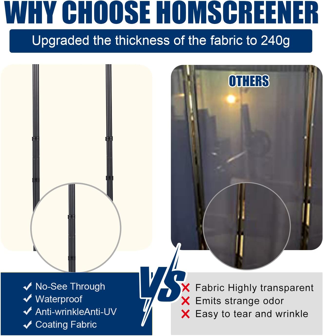 - Why HOMSCREENER: We are committed to providing premium room divider and satisfied after-service. Package included all the necessary accessories and installation manual. If any parts missing or damaged during transportation, do not hesitate to contact us for replacement