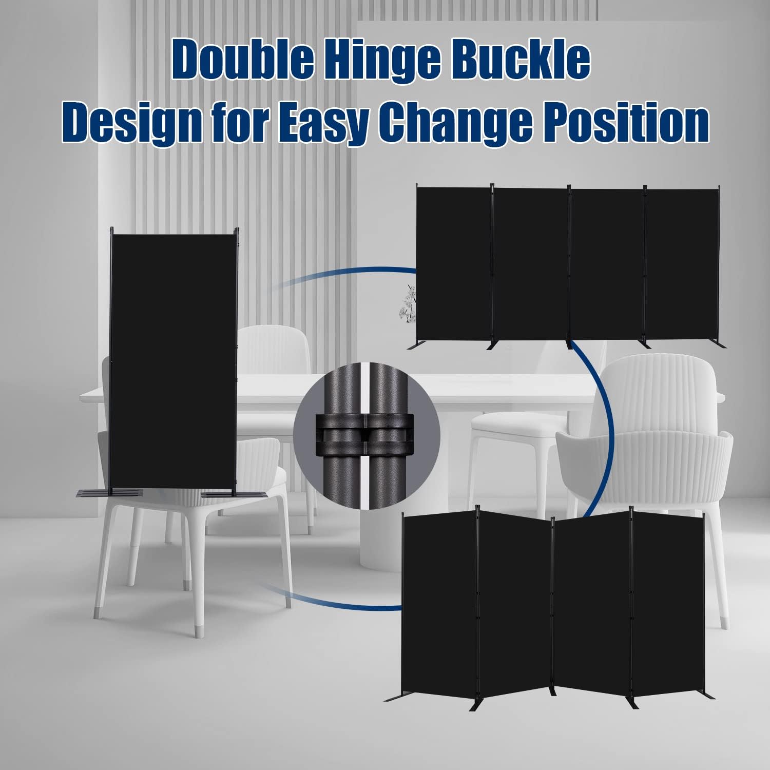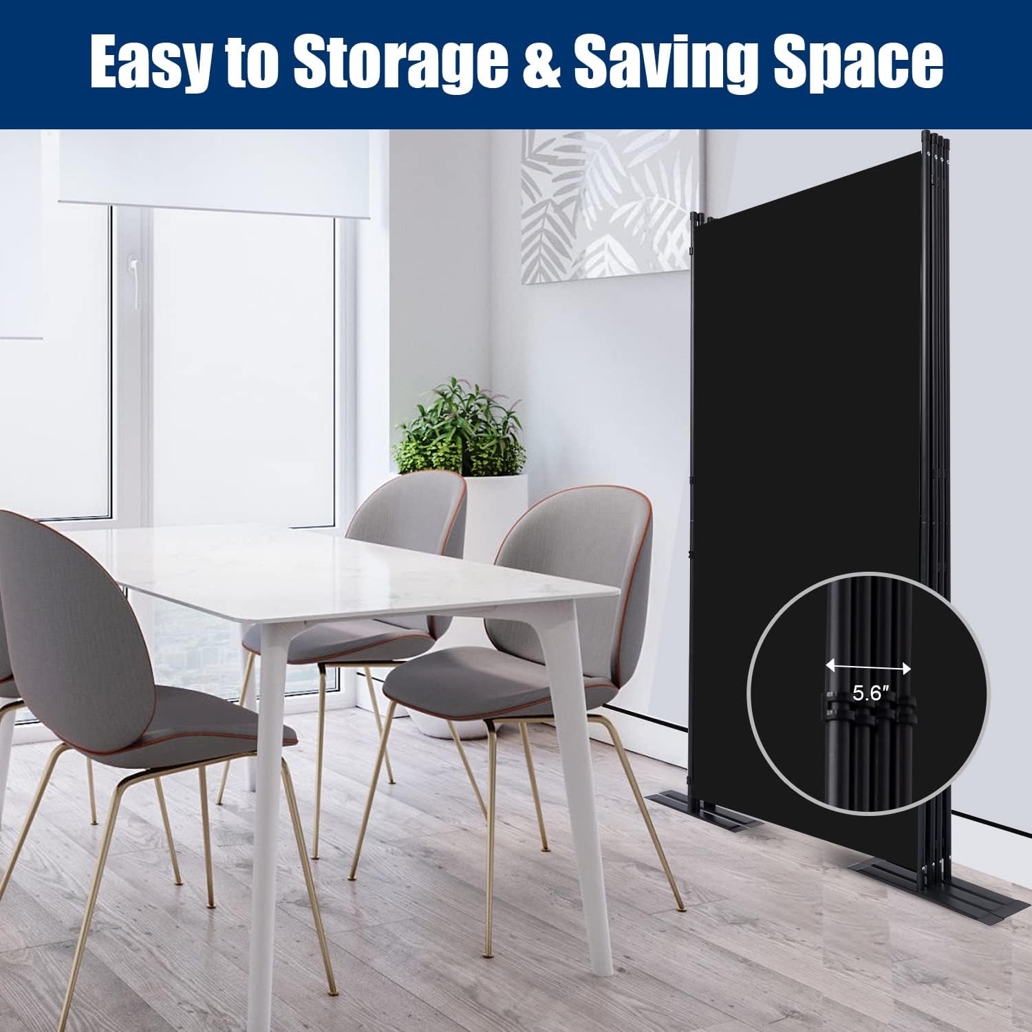 - Portable Moving and Folding Room Divider: Each portable room divider panel is connected by triple buckle hingles, so you can freely adjust the orientation of each panel screen to meet your needs, and connect multiple panels to create large temporary wall. They can also be easily folded up and stored in the garage when not in use. Folding size: 34''L x 71.3''H x 6.3''W, Maximum size: 136''L x 71.3''H x 17.7''