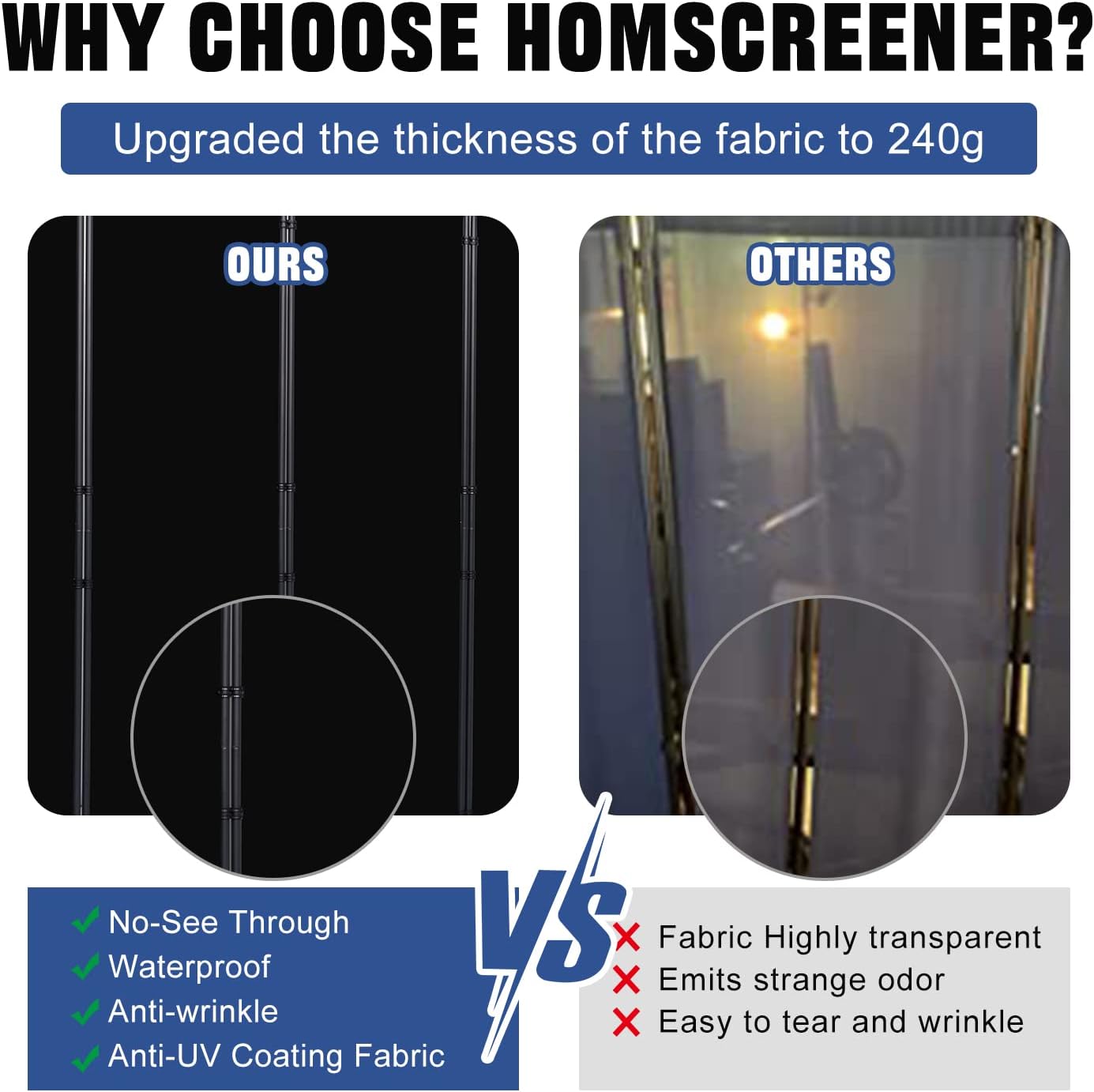 - Why HOMSCREENER: We are committed to providing premium room divider and satisfied after-service. Package included all the necessary accessories and installation manual. If any parts missing or damaged during transportation, do not hesitate to contact us for replacement