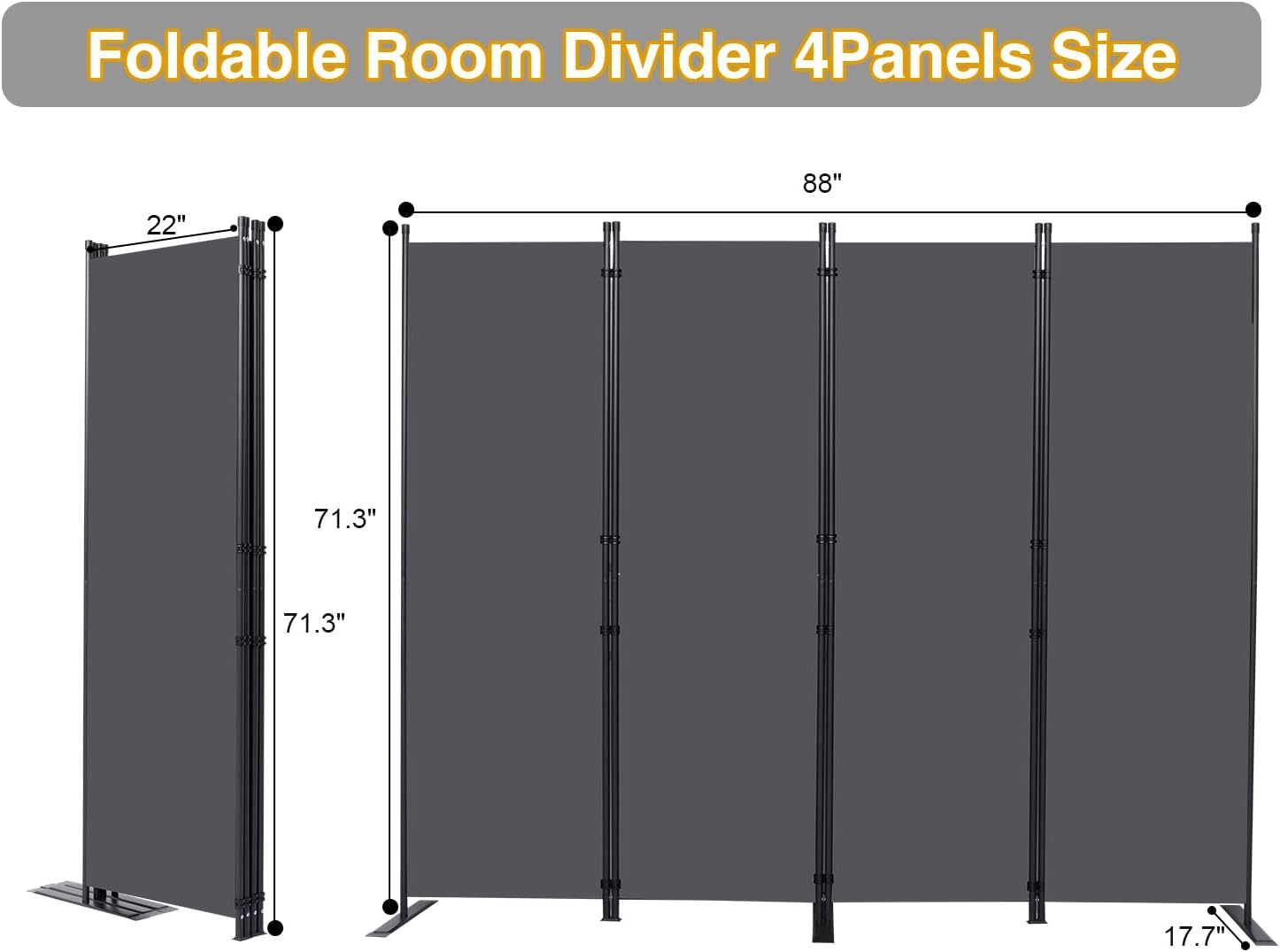 Wall Divider, 4 Panel Room dividers and Folding Privacy Screens with Wider Support Feet, 6 Ft Portable Privacy Screen for Room Separator, 88" W X 71" H, Grey