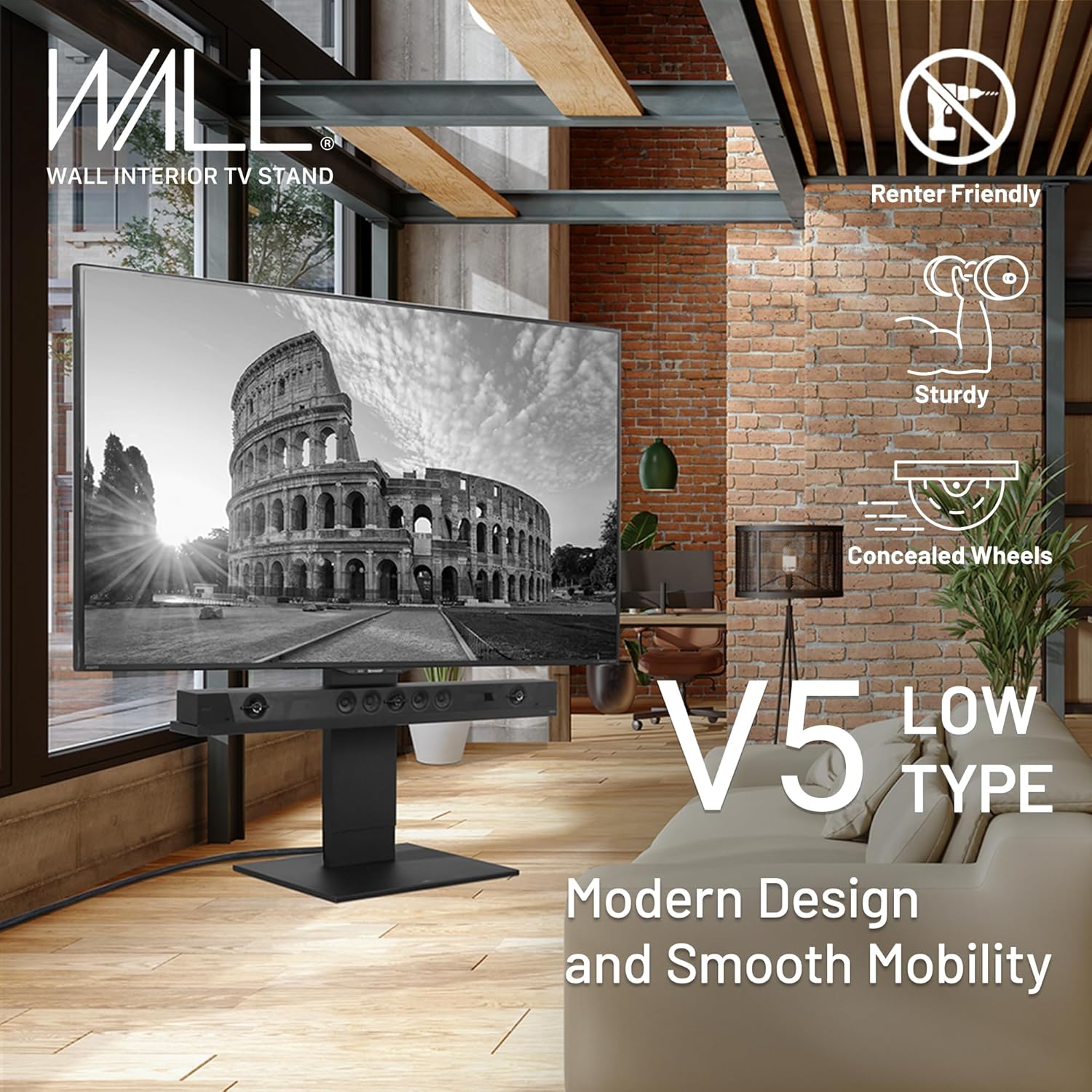 WALL V5 Low Type | Minimalist Rolling TV Stand for 32–80 Inch | Satin Black | Portable, Space Saving, Height Adjustable, No Drill | for Living Room and Bedroom | Japan-Engineered Design