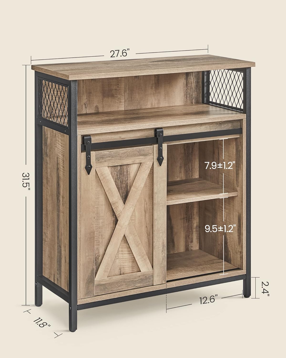 VASAGLE Buffet Cabinet, Coffee Bar Storage Cabinet, Sideboard with 1 Sliding Barn Door, Adjustable Shelves, 11.8 x 27.6 x 31.5 Inches, for Living Room, Camel Brown and Ink Black ULSC089B50