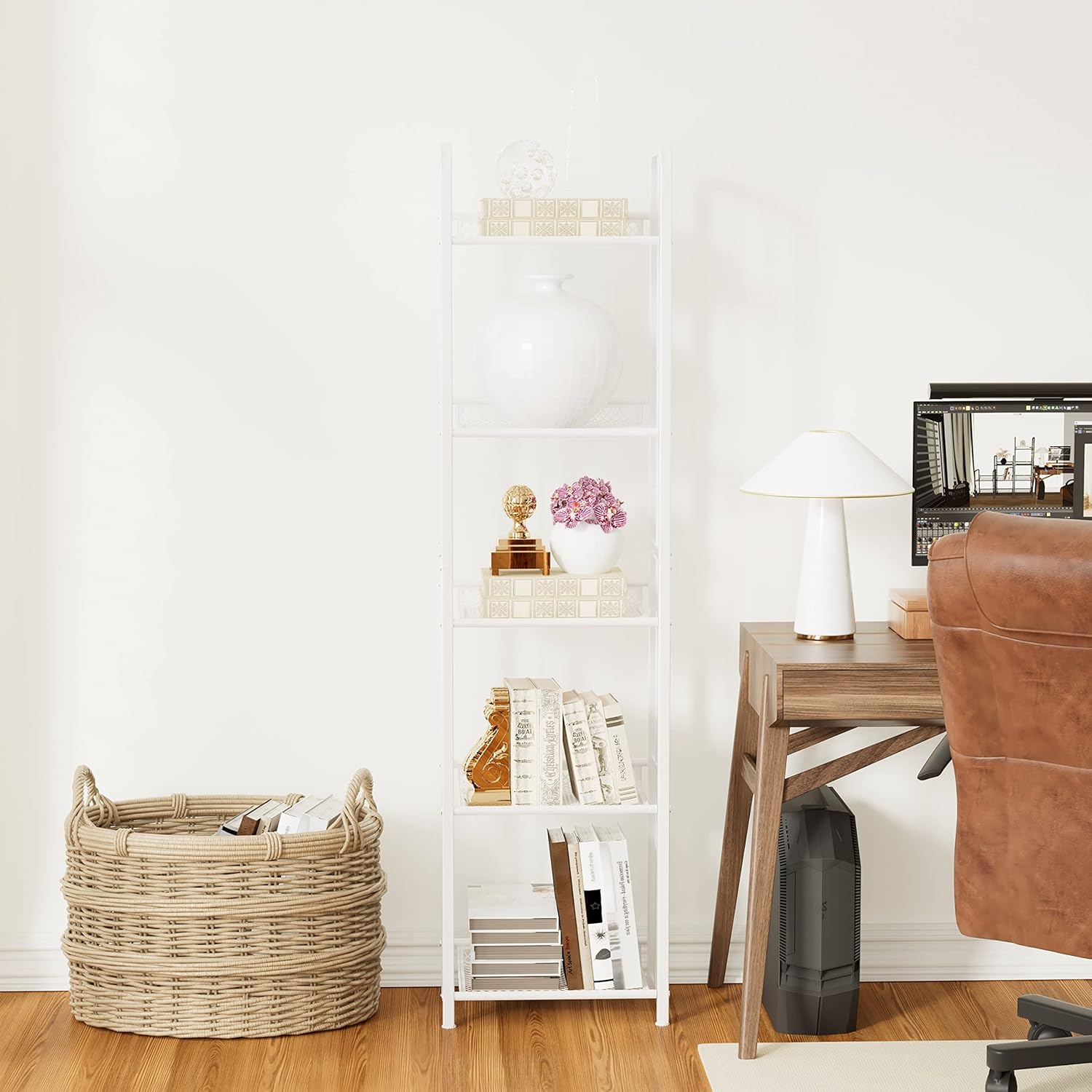 Bookshelf Storage Shelf Bookcase Freestanding Storage Stand for Living Room, Bedroom, Kitchen, Rust Resistance, Easy Assembly Free Combination Multi-Functional Organizer (5 Tiers,White)