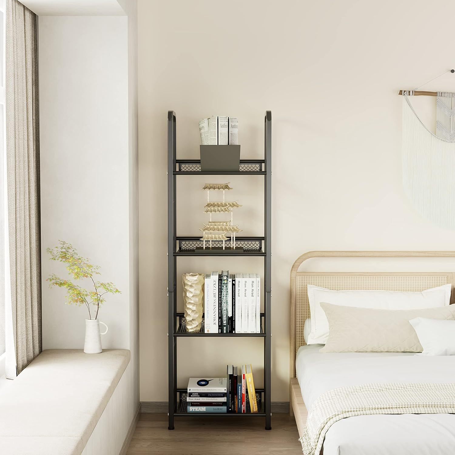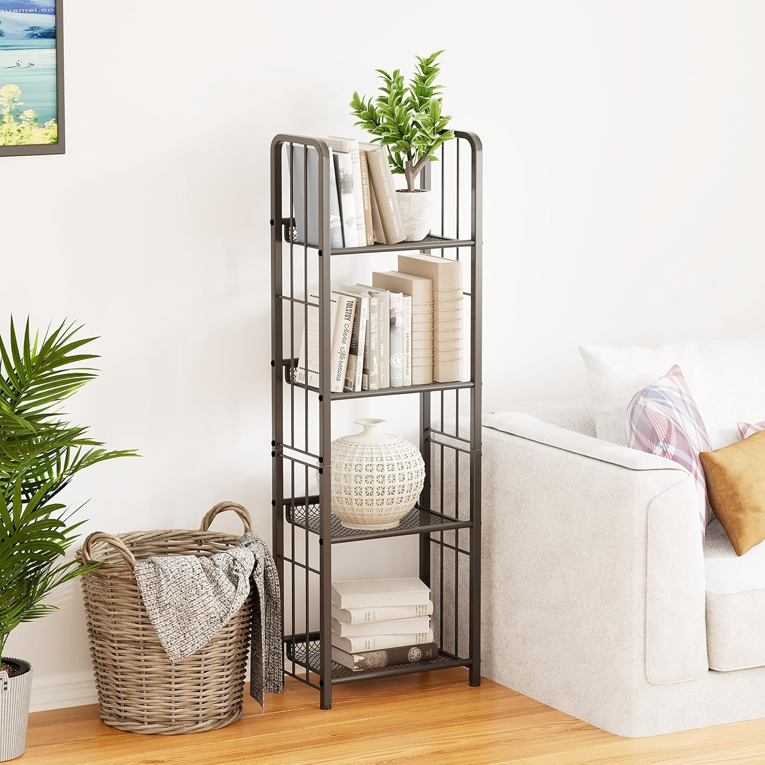 Bookshelf Vertical Storage Freestanding Storage Stand for Living Room, Bedroom, Kitchen, Rust Resistance, Easy Assemblyl Free CombinationMulti-Functional Organizer (4 Tiers, Black)