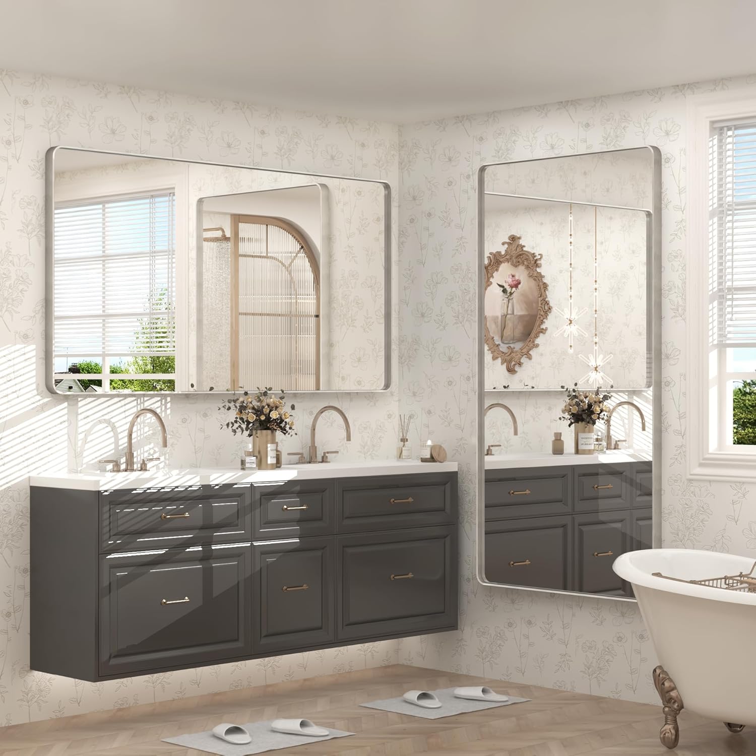 - 【Hangs Vertically or Horizontally】Each silver wall mirror includes two "Z" brackets which is sturdy enough to support the weight of the mirror. Fix the "Z"brackets on the wall first and then hang the mirror on horizontally or vertically like hanging a picture. No need to align small holes like other mirrors. Mounting hardwares included.