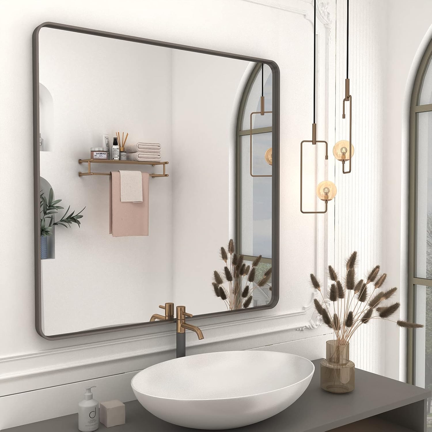 - ✔【Durable Brushed Bronze Framed Mirror】With round corner metal frame, CHARMOR bronze bathroom mirror looks elegant and feels smooth. The frame material is premium alumium alloy with brushed texture, which is stylish and more durable. Light weight, good corrosion resistance and wear resistance.