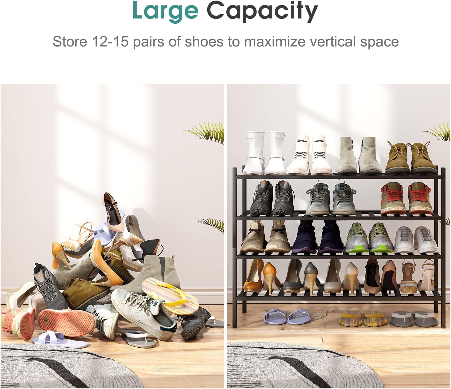 - Large Shoe Rack for 12-15 Pairs: 4 pairs of adult shoes can be placed on each layer